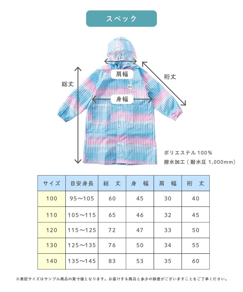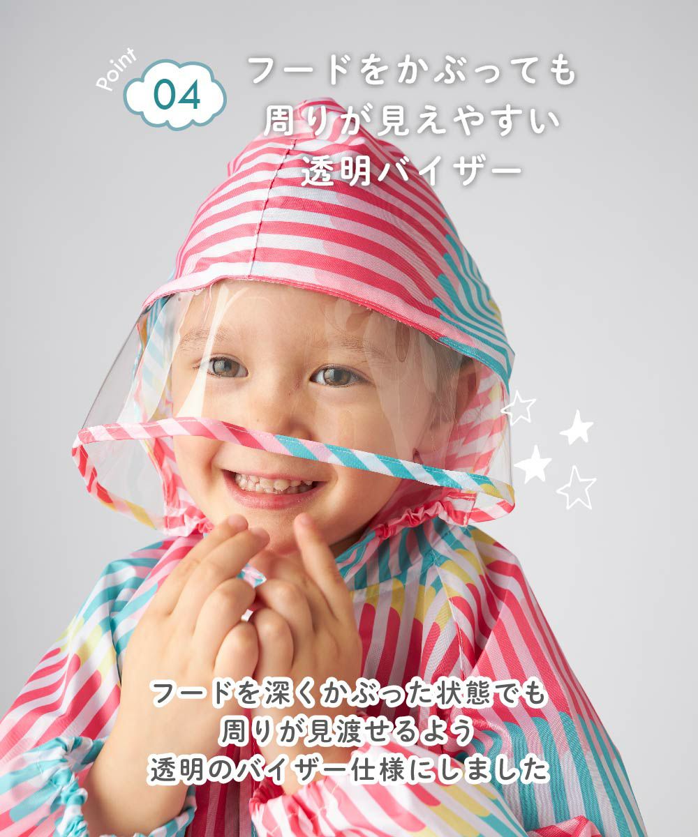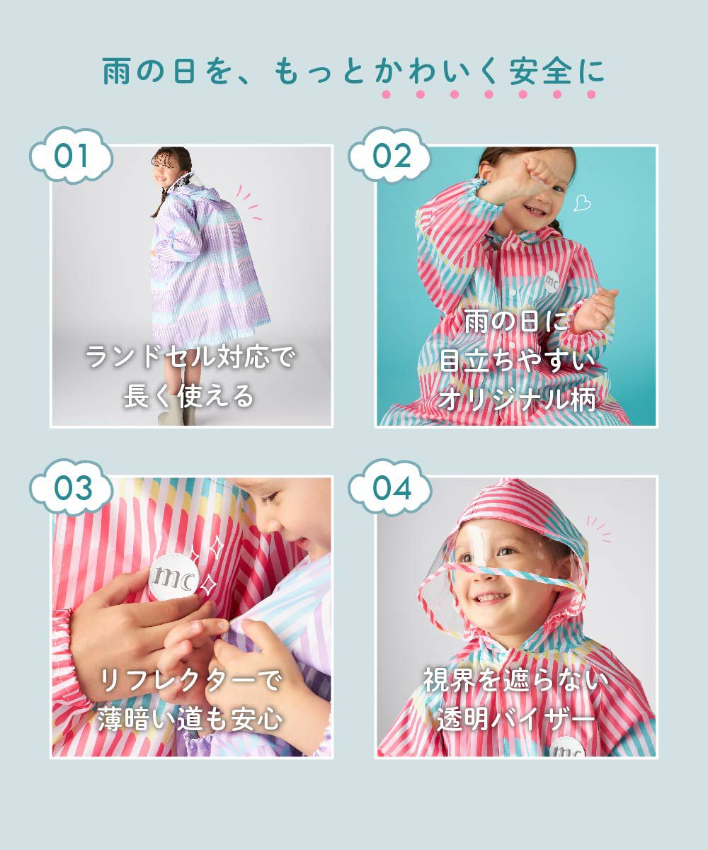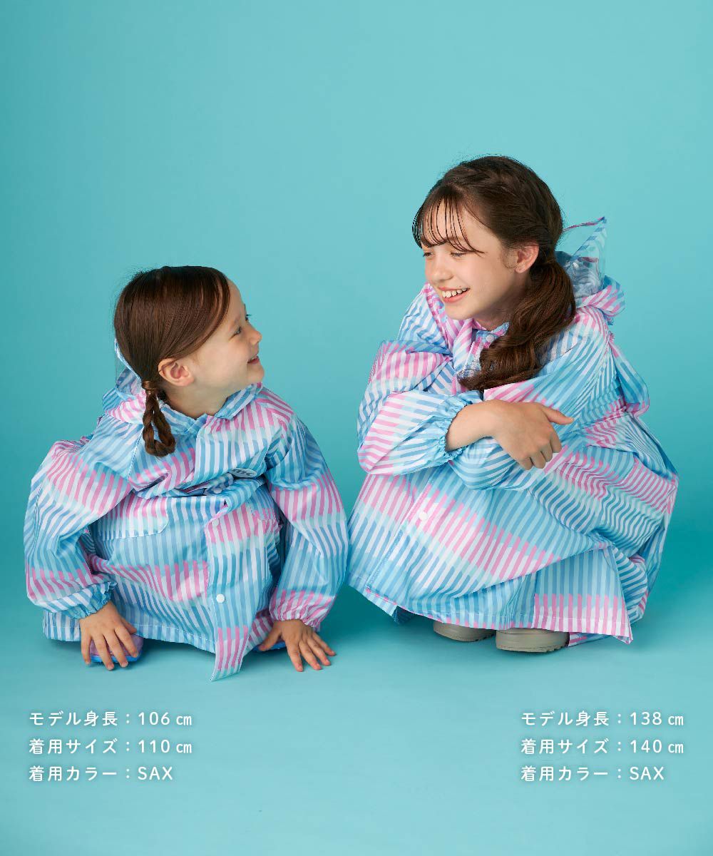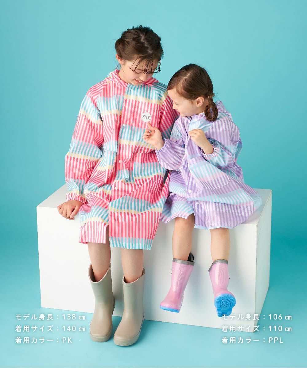 オリジナルのストライプ柄がかわいいランドセル対応レインコートです。