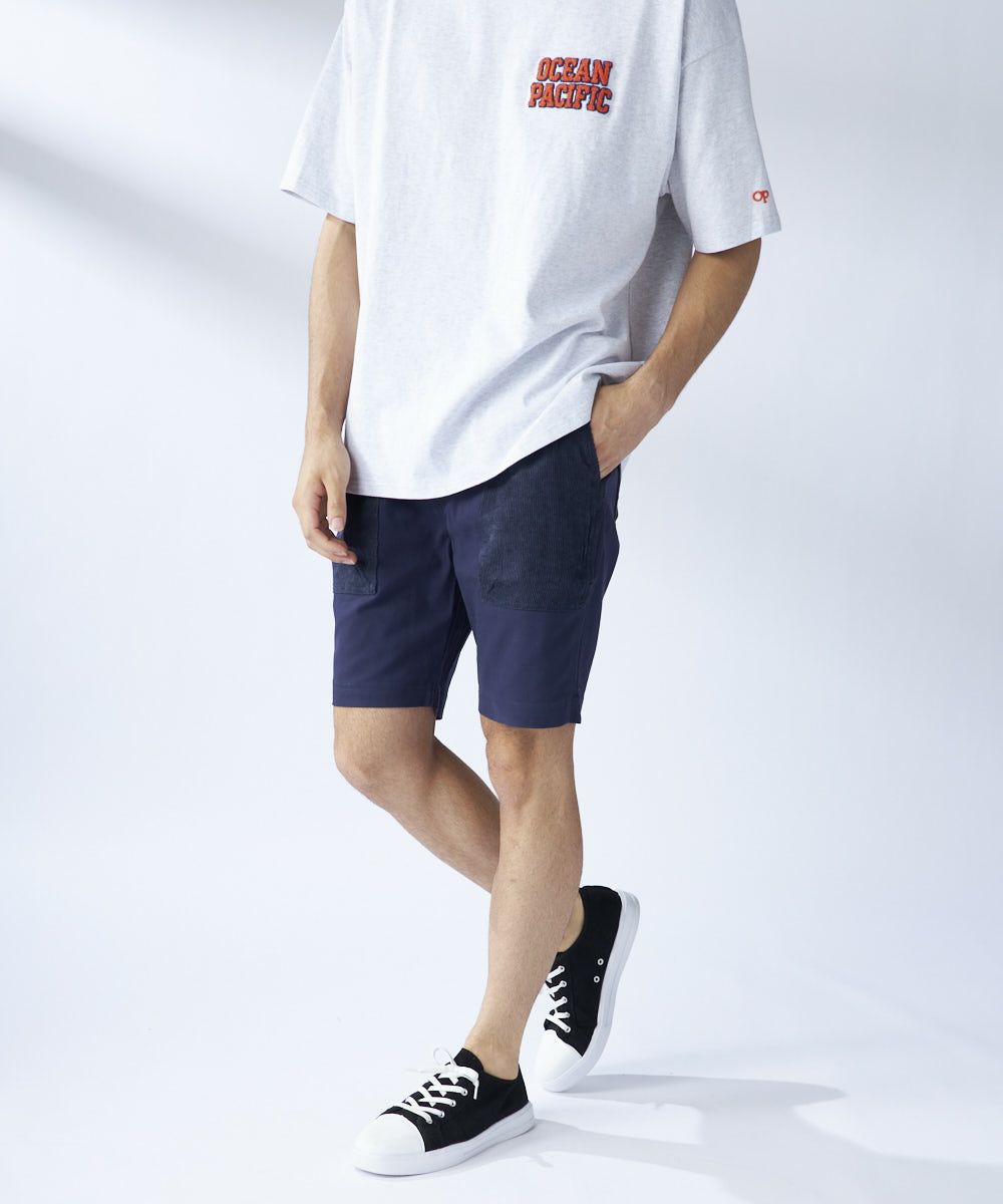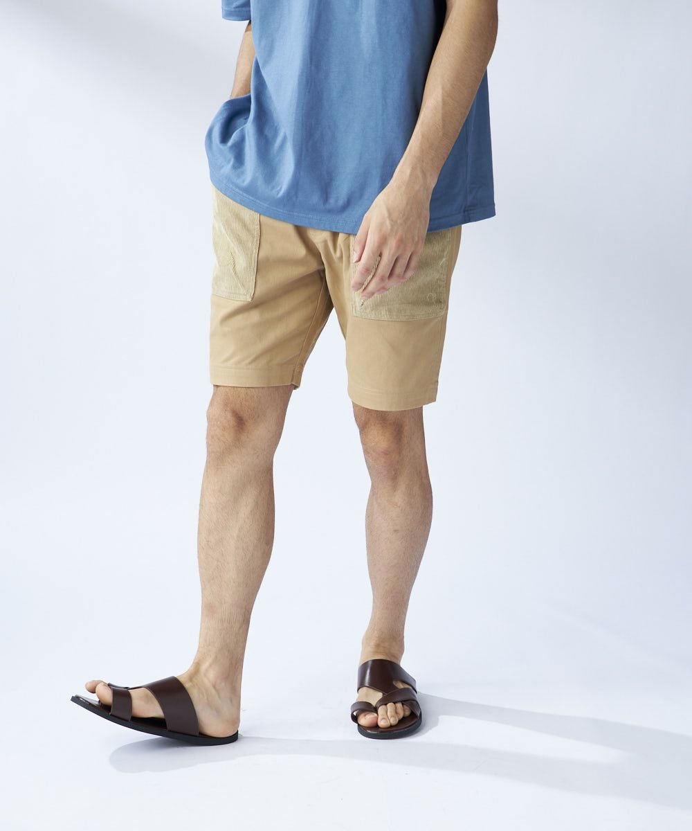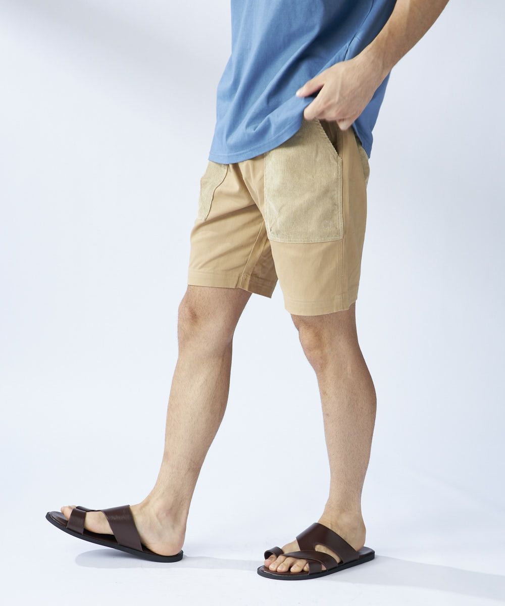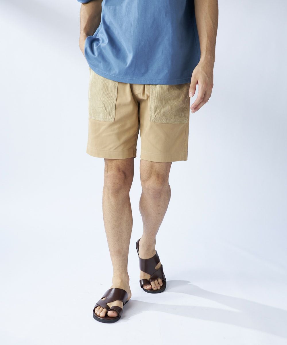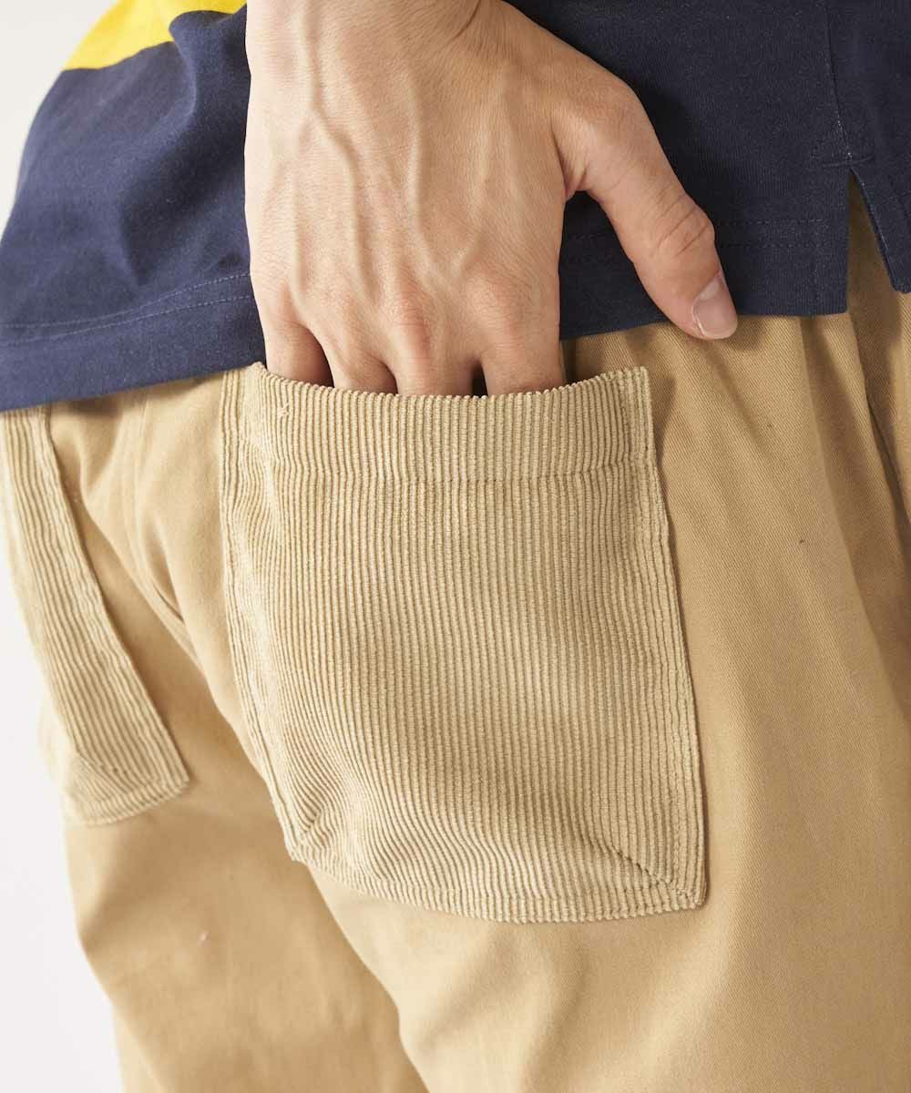 ツイルパンツにコーデュロイを部分使いで使用しています。