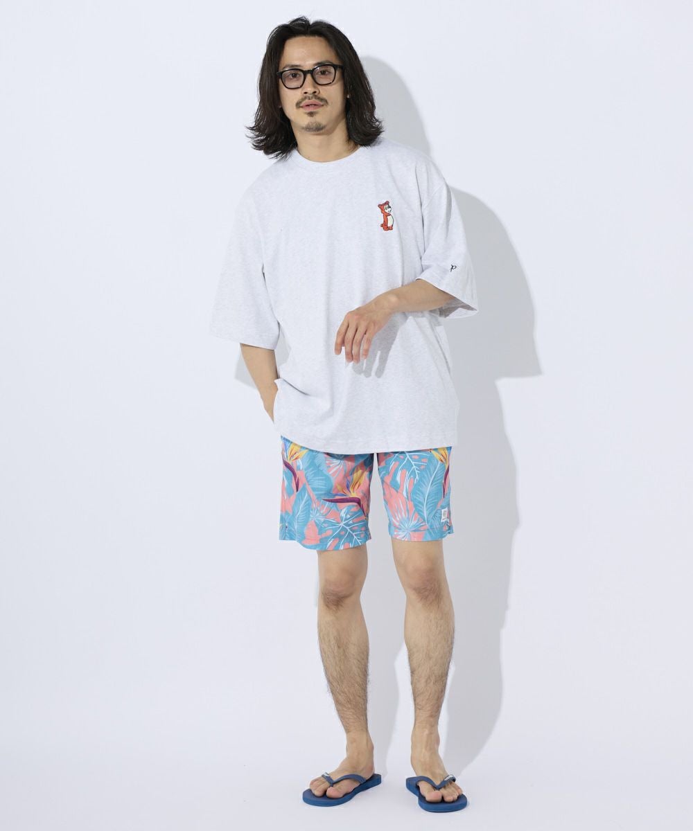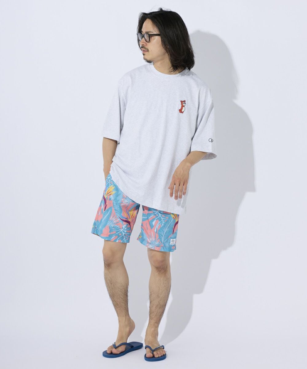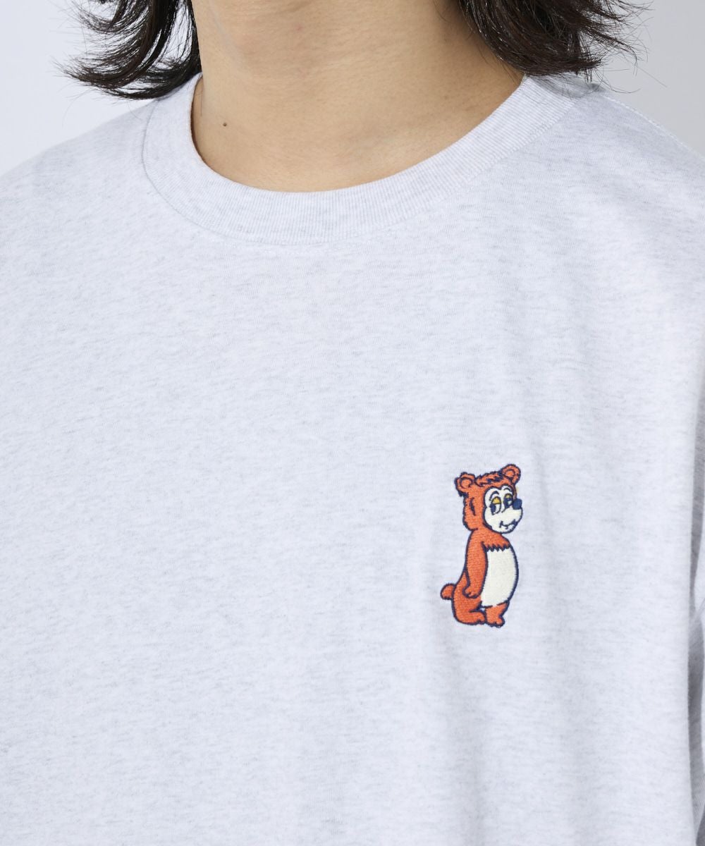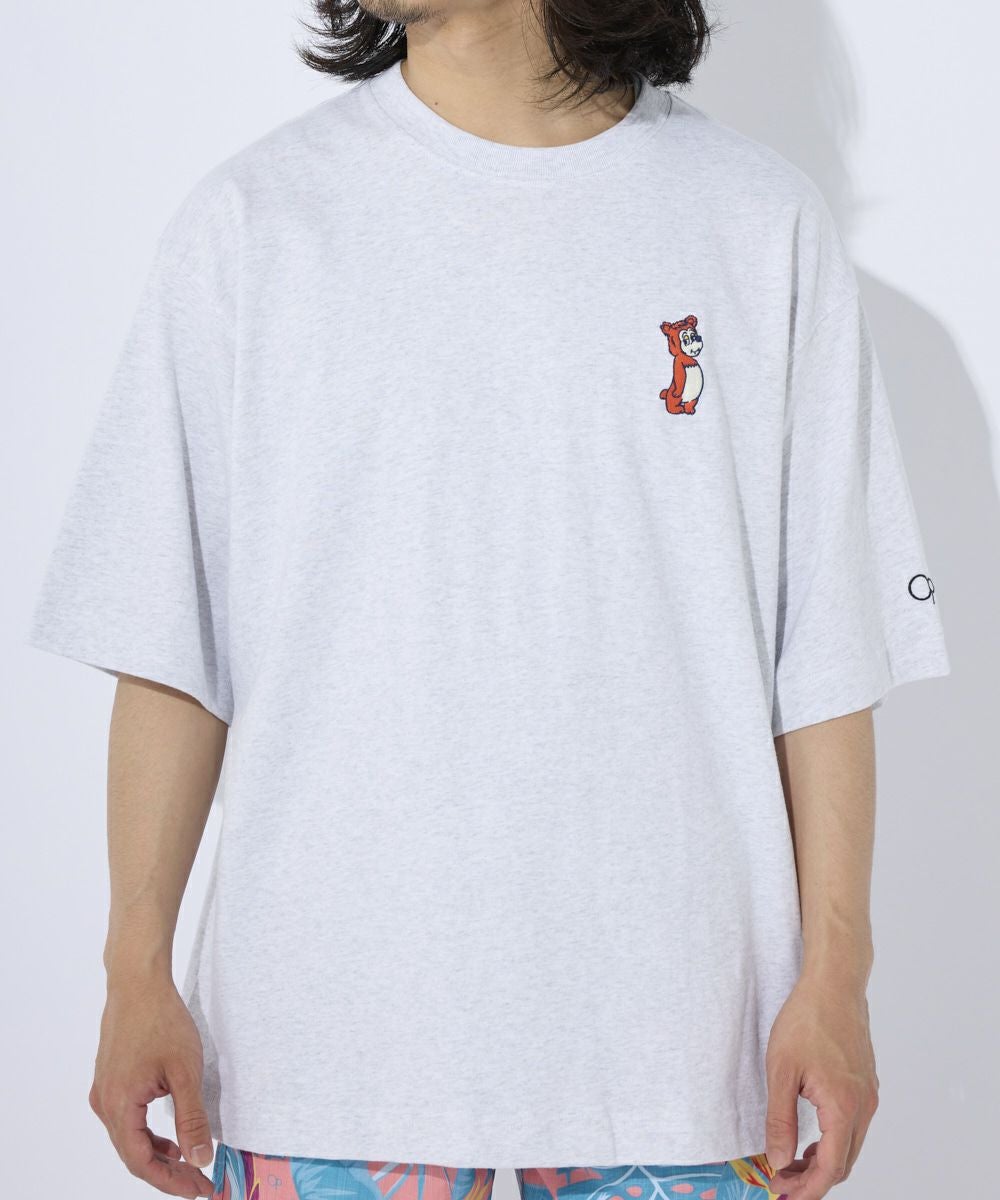 厚手でカジュアル感のあるOE天竺を使用。 フロントにはワンポイントでキャラクターの刺繍がPOPでおしゃれポイントに。