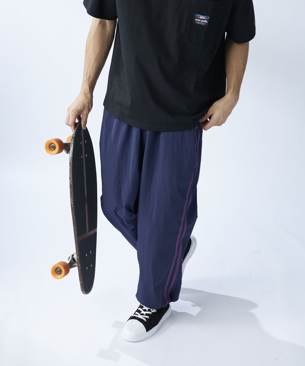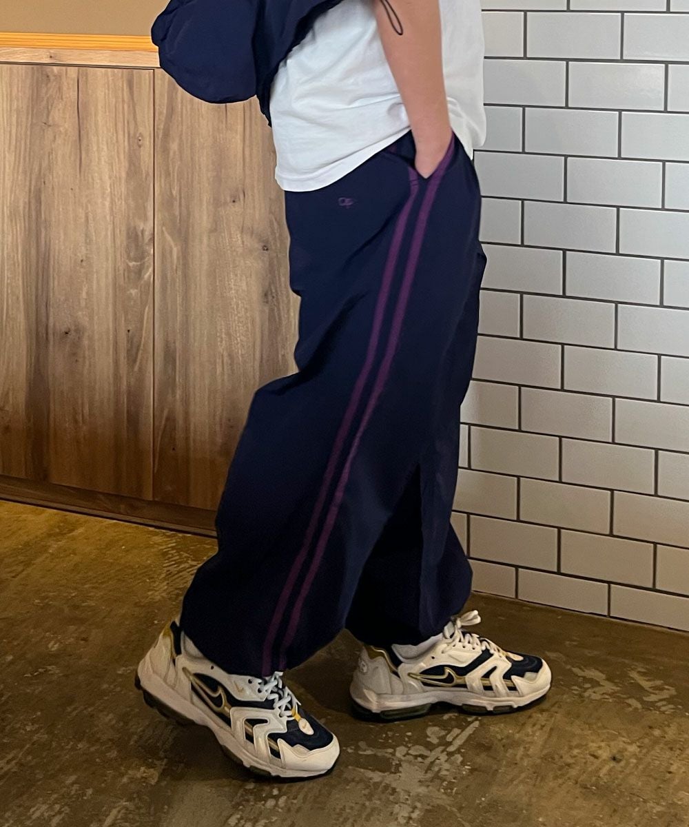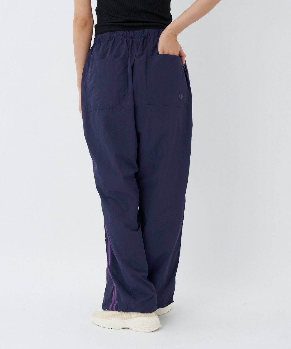 配色のラインとポケットのOPロゴ刺繍がかわいいトラックパンツ。