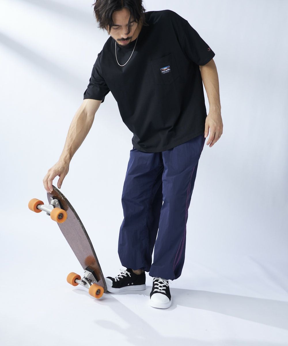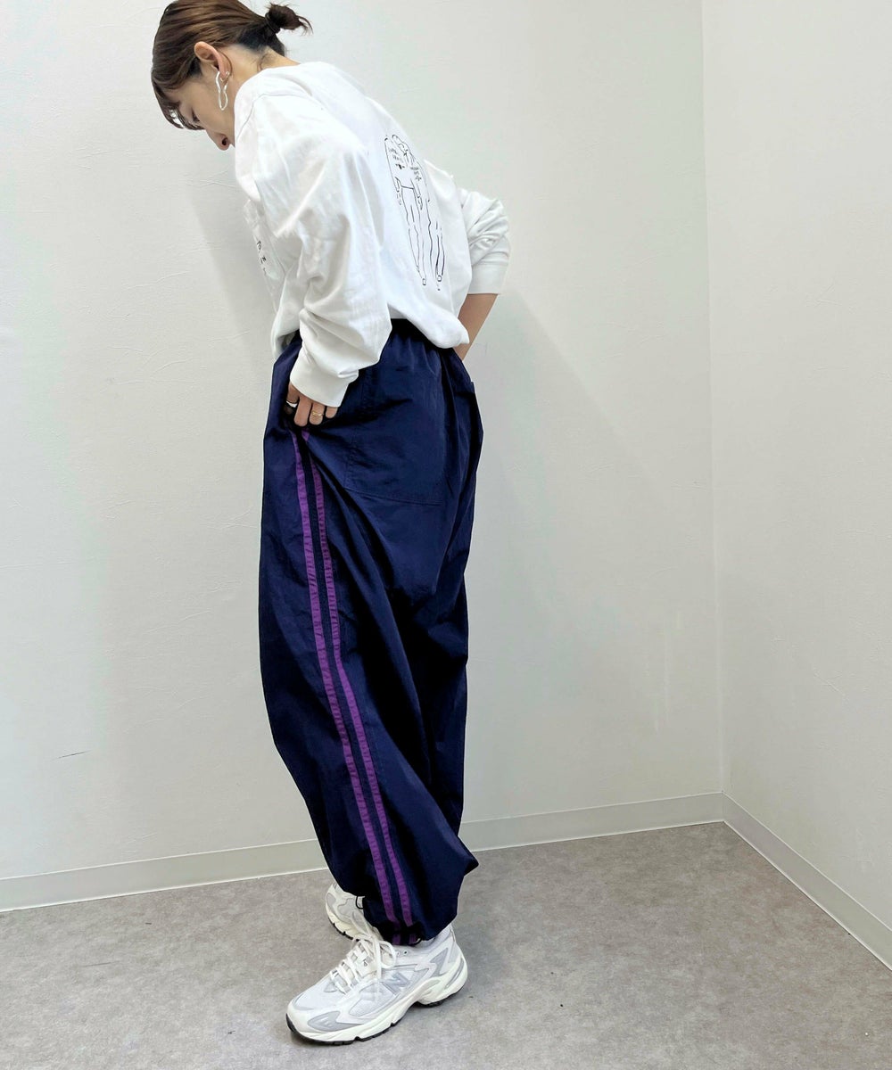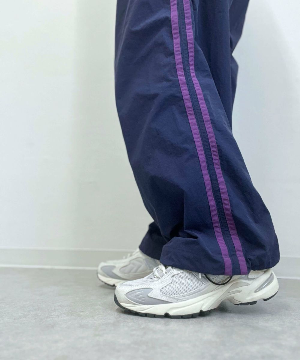 配色のラインとポケットのOPロゴ刺繍がかわいいトラックパンツ。