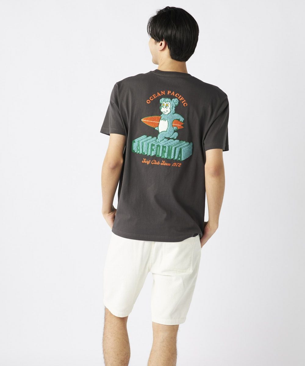 OPの人気キャラクター「カリフォルニアベア」が大きくバックに刺繍されたTシャツです!