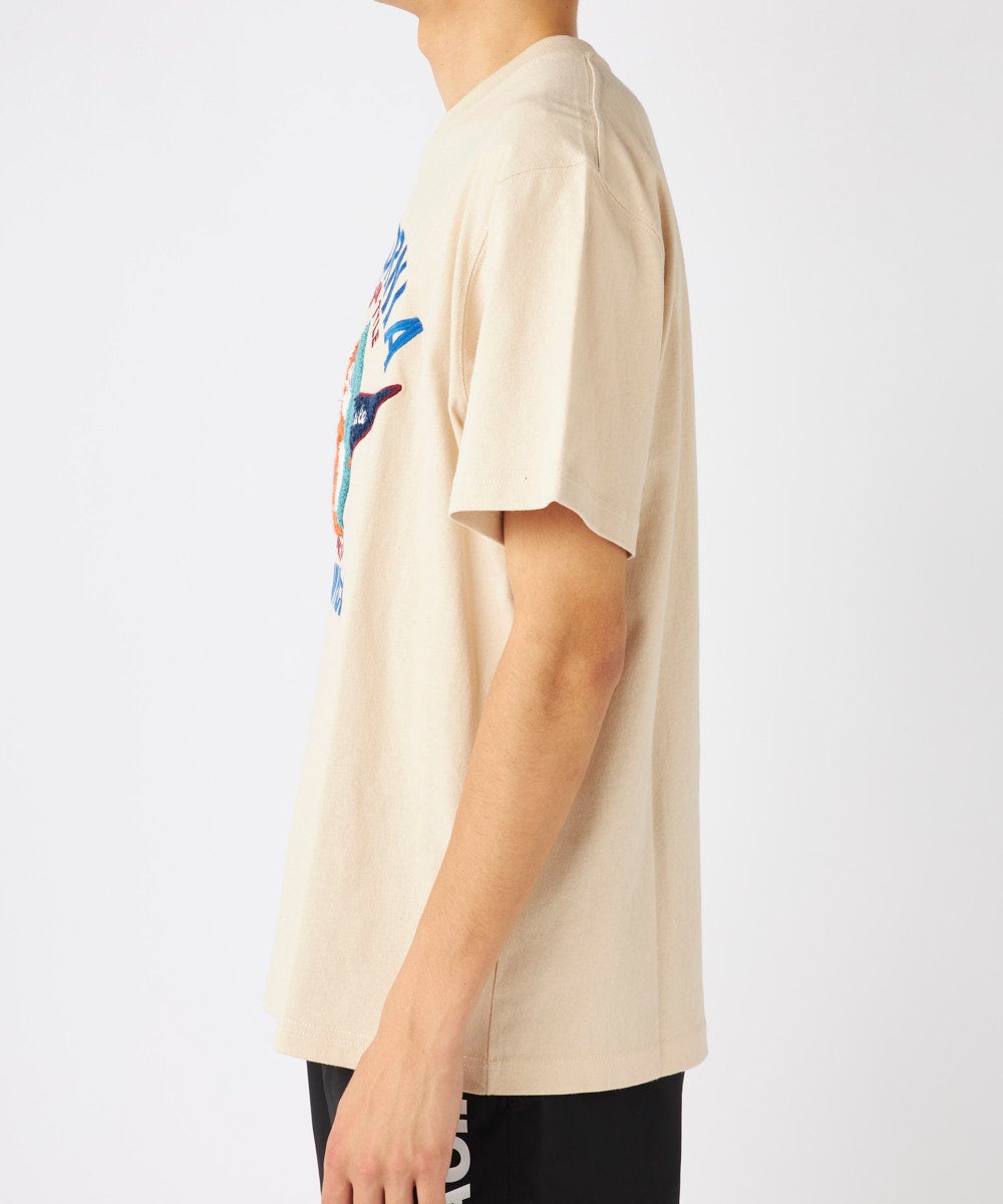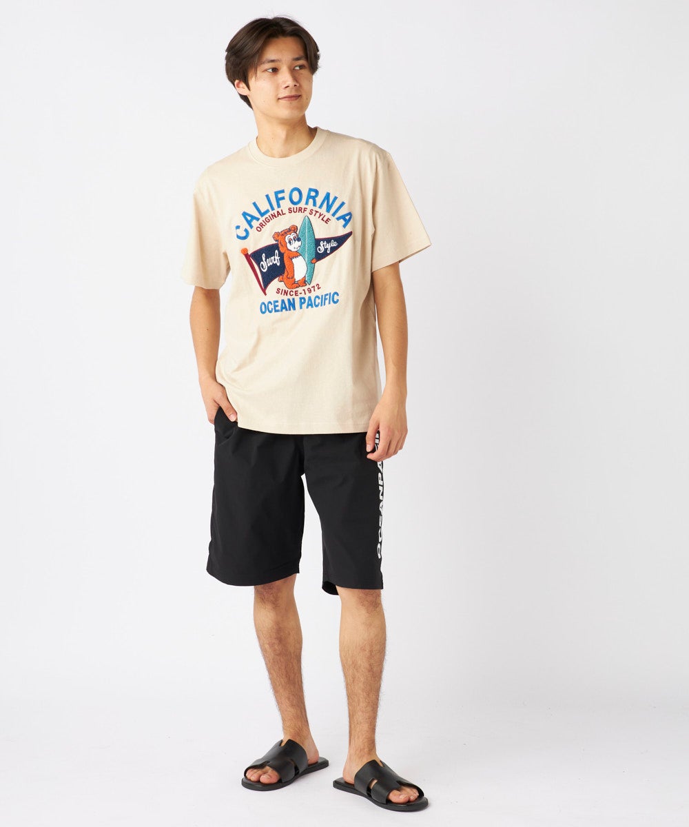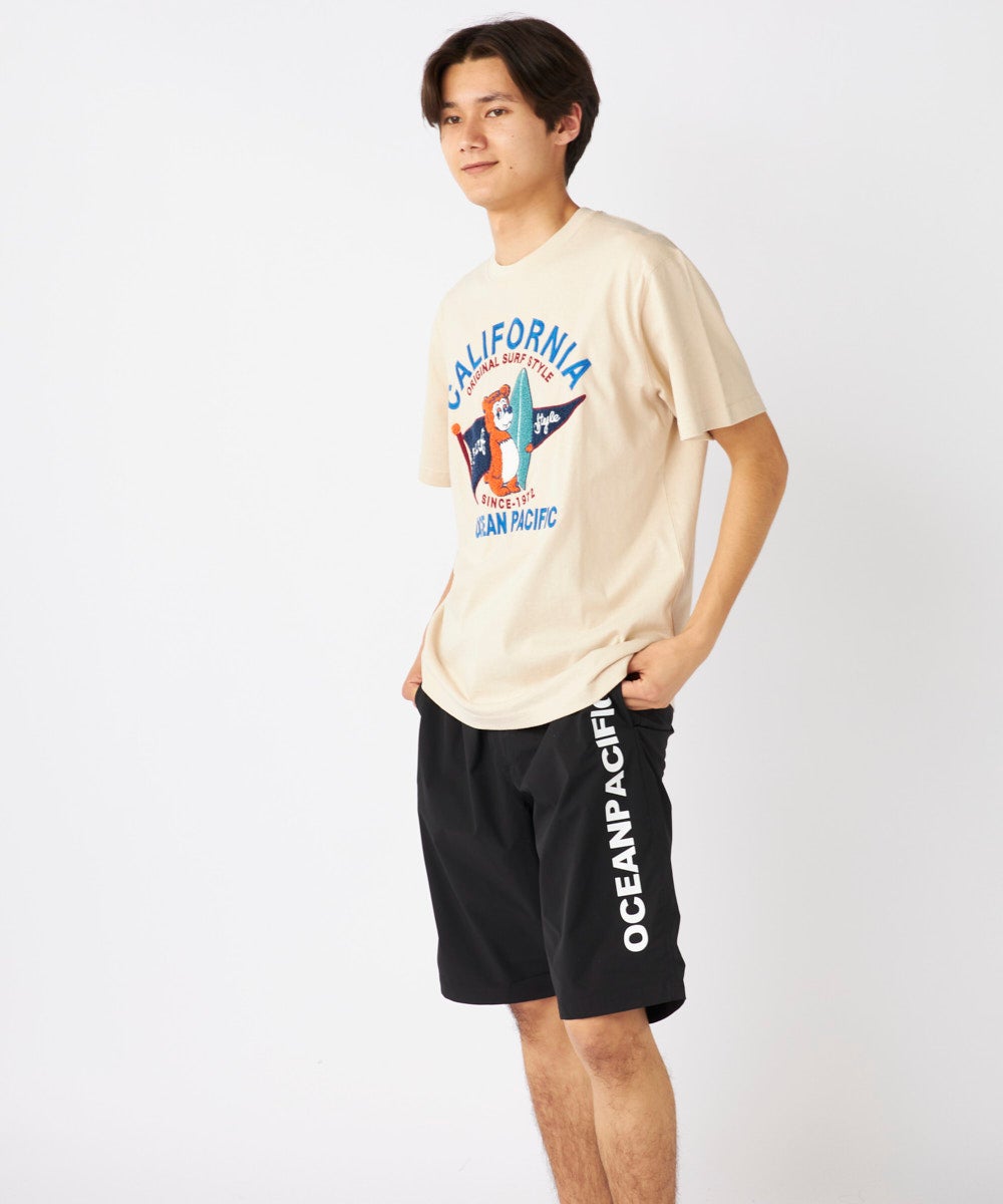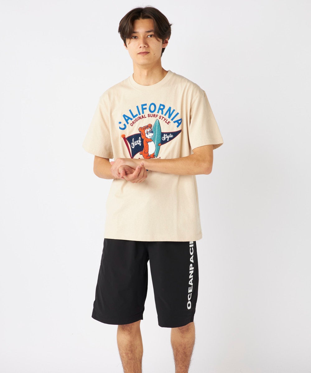 大人気の『California Bear』 Tシャツ。綿100%素材で肌触り抜群、 フロント胸にワンポイント、バッグにはキャラクターのグラフィックを配置。 流行のデザインで、カジュアルにぴったりな一枚です。
