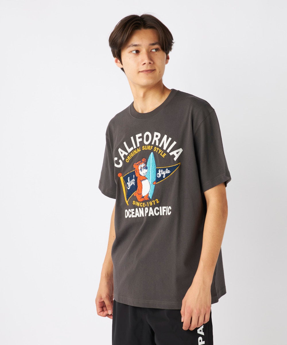 大人気の『California Bear』 Tシャツ。綿100%素材で肌触り抜群、 フロント胸にワンポイント、バッグにはキャラクターのグラフィックを配置。 流行のデザインで、カジュアルにぴったりな一枚です。