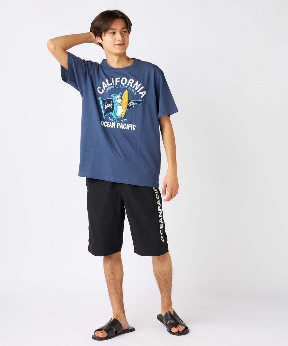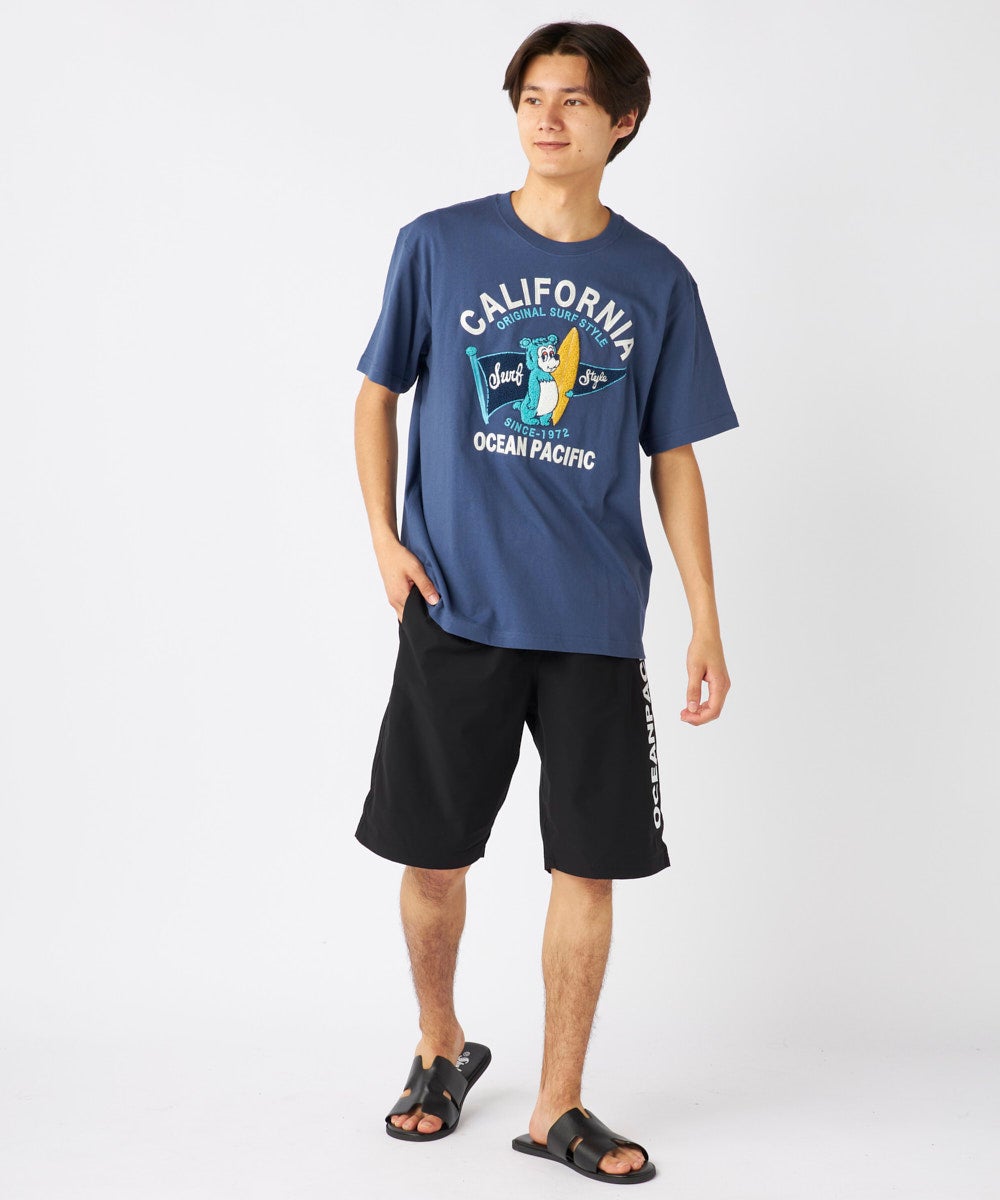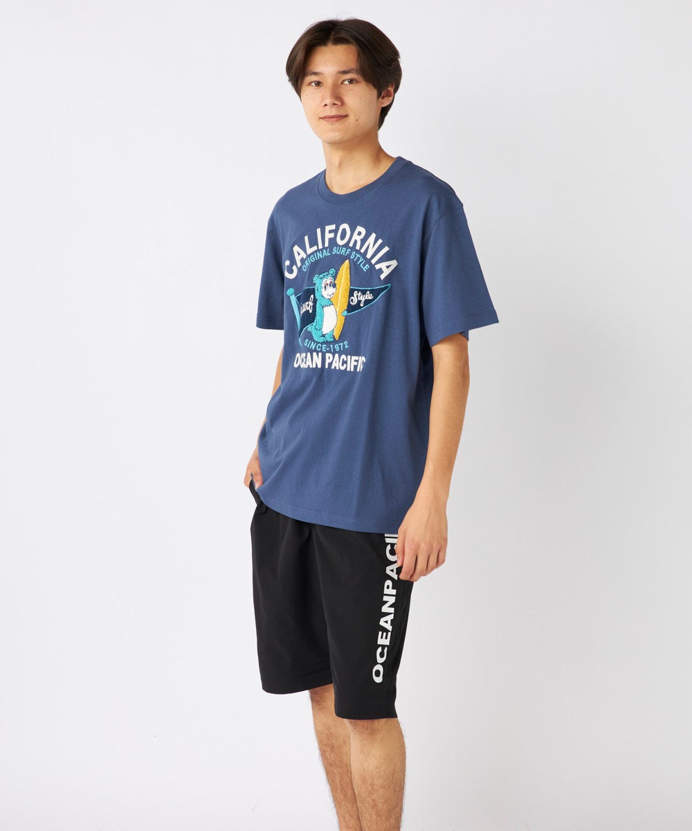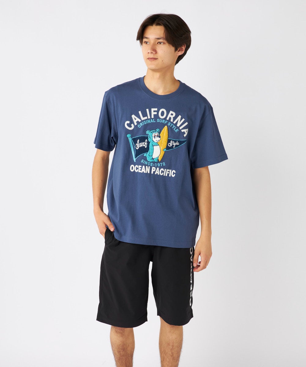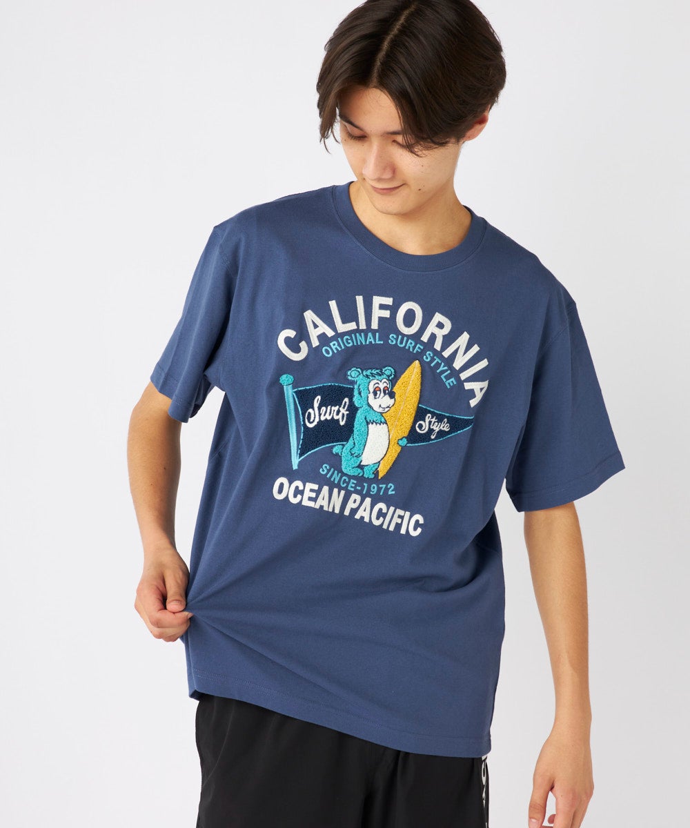 大人気の『California Bear』 Tシャツ。綿100%素材で肌触り抜群、 フロント胸にワンポイント、バッグにはキャラクターのグラフィックを配置。 流行のデザインで、カジュアルにぴったりな一枚です。