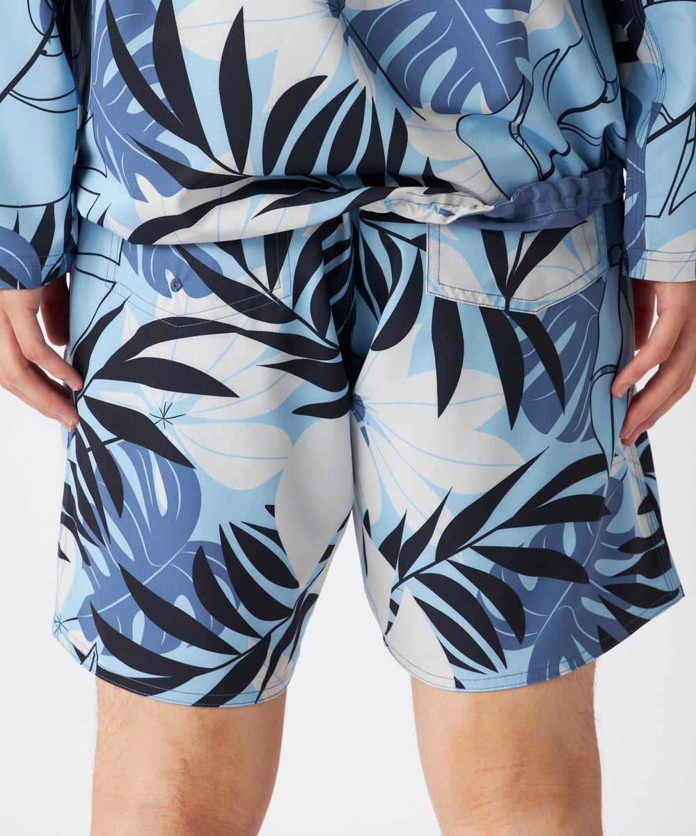 メンズハイブリッドショーツ。ストレッチ素材を使用し、シーズンテーマのリーフ柄を採用。 定番デザインにリバーシブル仕様を取り入れ、コーディネートに合わせて気軽にスタイルチェンジできる一枚で す。