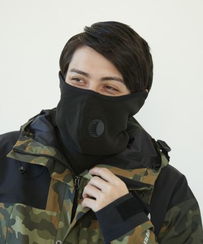 顔と耳と首元までカバーしてくれるフェイスウォーマー。ベルクロで簡単装着でき耳も痛くなりにくいです。