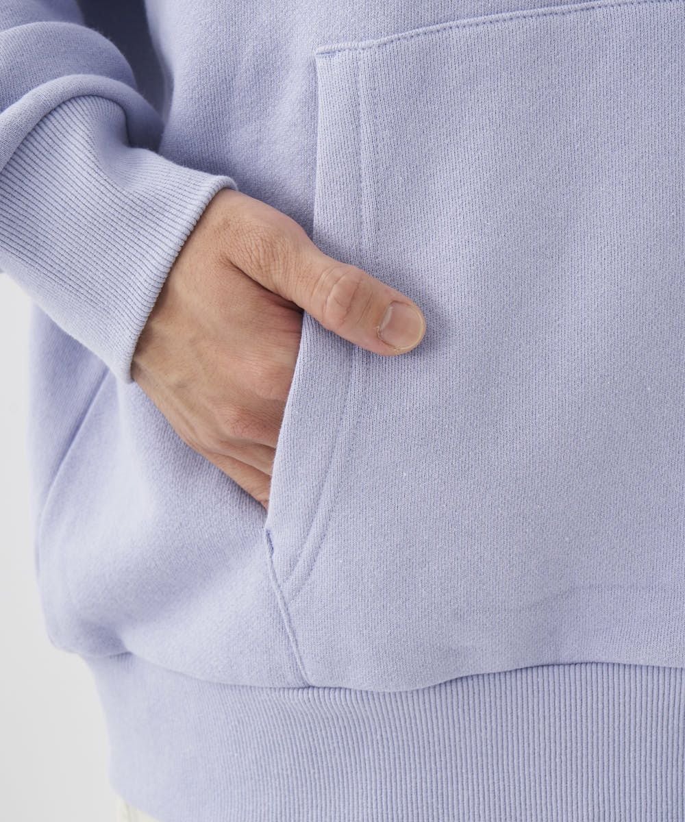 裏起毛のあったかプルパーカー。バックには立体感のあるサガラ刺しゅうで、波モチーフのデザインを施しました。