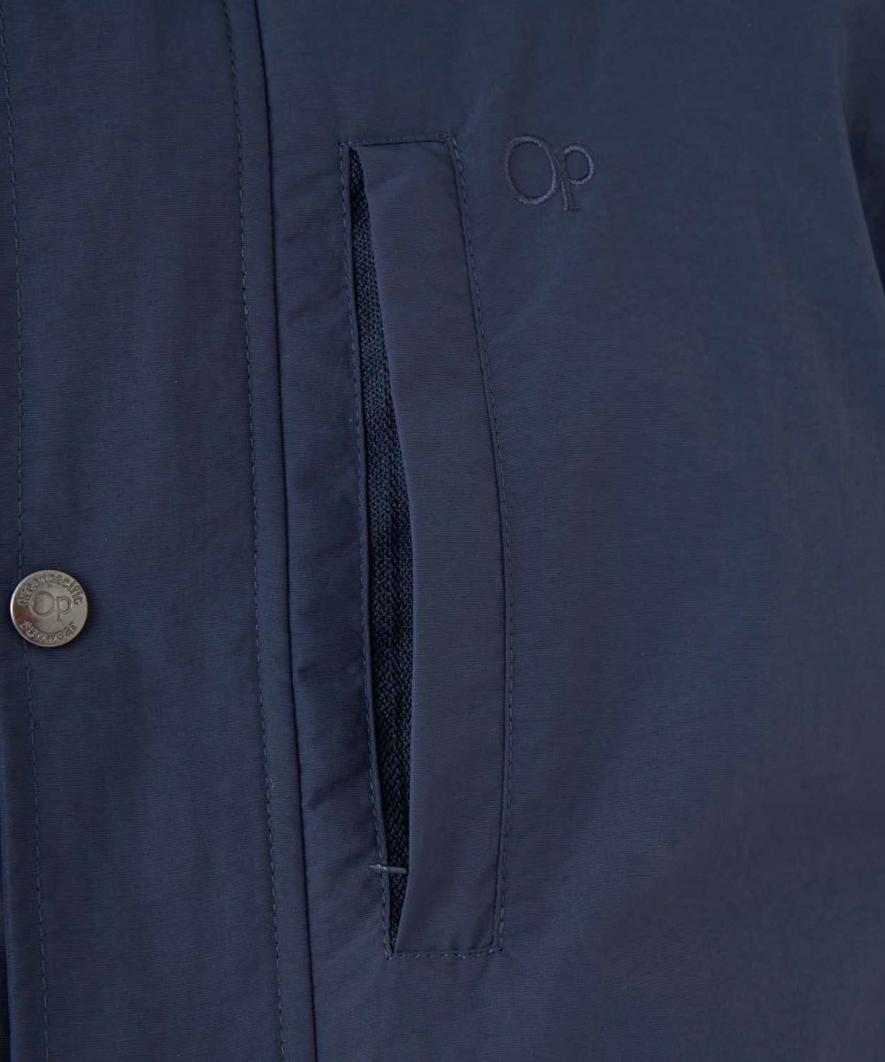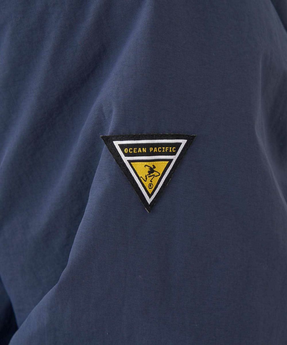 デザイン面では、アンティークなシルバーのOP刻印ボタンがポイントで、さりげないワンポイントのワッペンがアクセントになっていてアウトドア感を増してくれます!