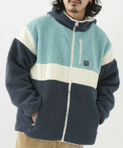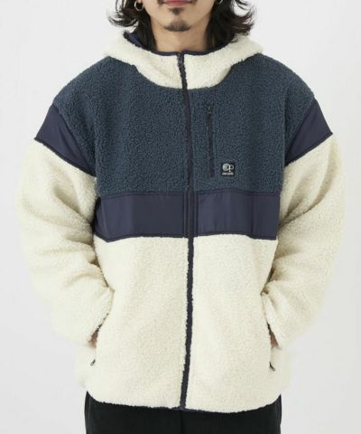 異素材に切替えたパイピングやカラーブロックがアクセントになってくれるフード付きジップジャケット。厚みのあるボアフリース生地を使用した、ソフトな風合いも着心地のよいアイテムです。胸でタフタと切り替えてることで、よりすっきりおしゃれなアウターに!!