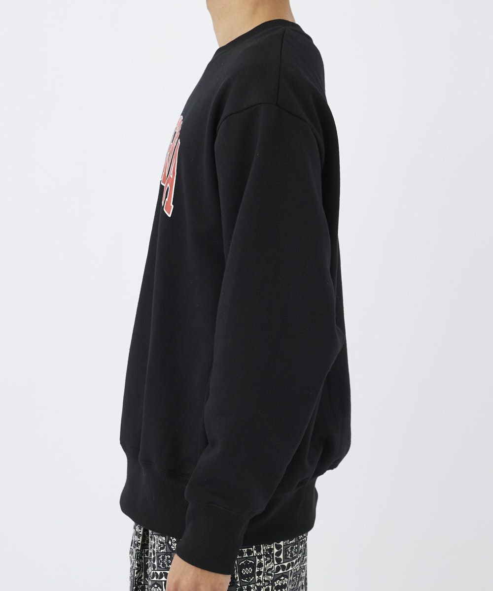 シンプルなデザインのカレッジ調クルースウェット。裏毛素材で快適な着心地、 [カリフォルニア]ロゴがアクセント。