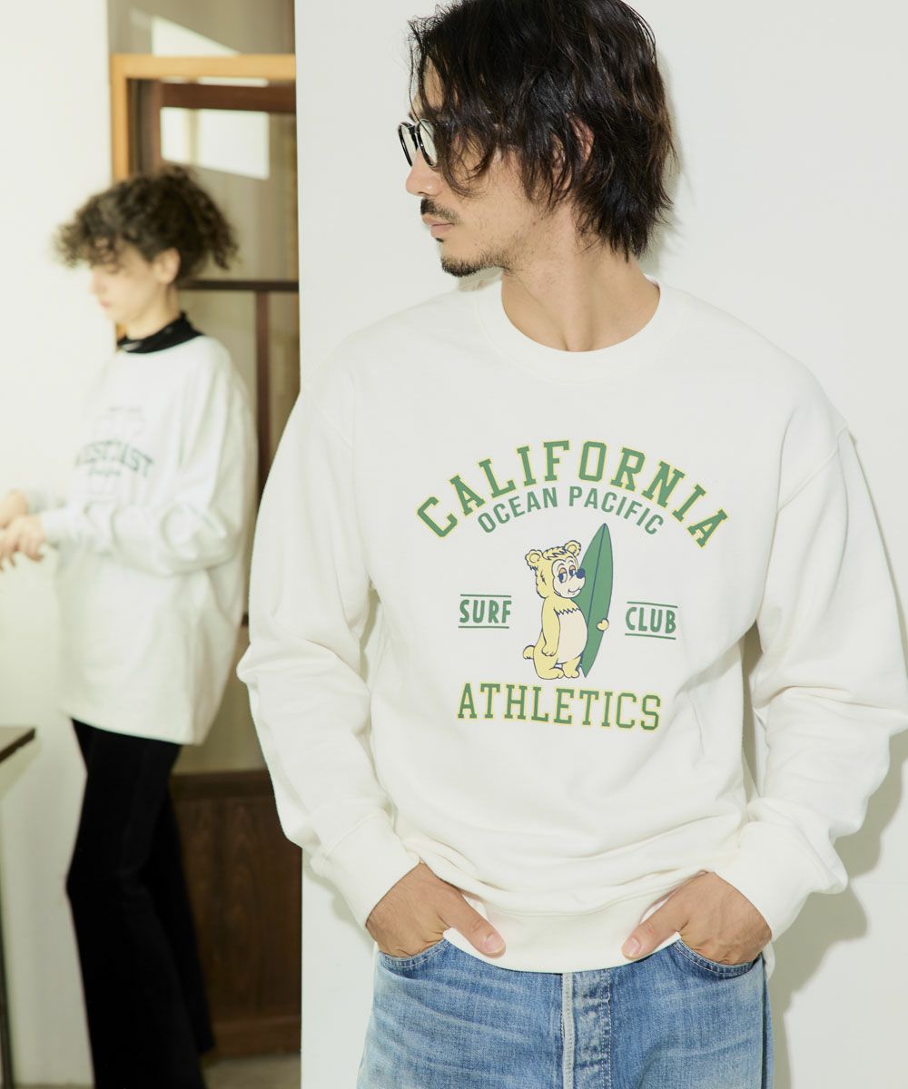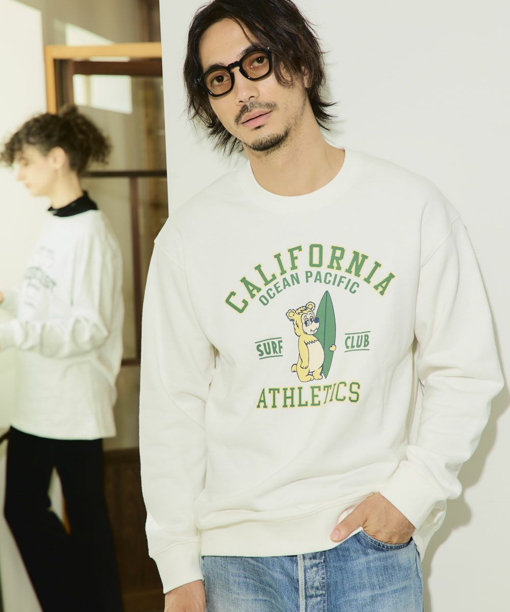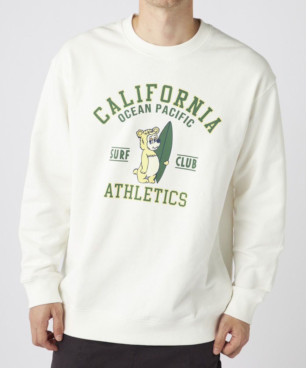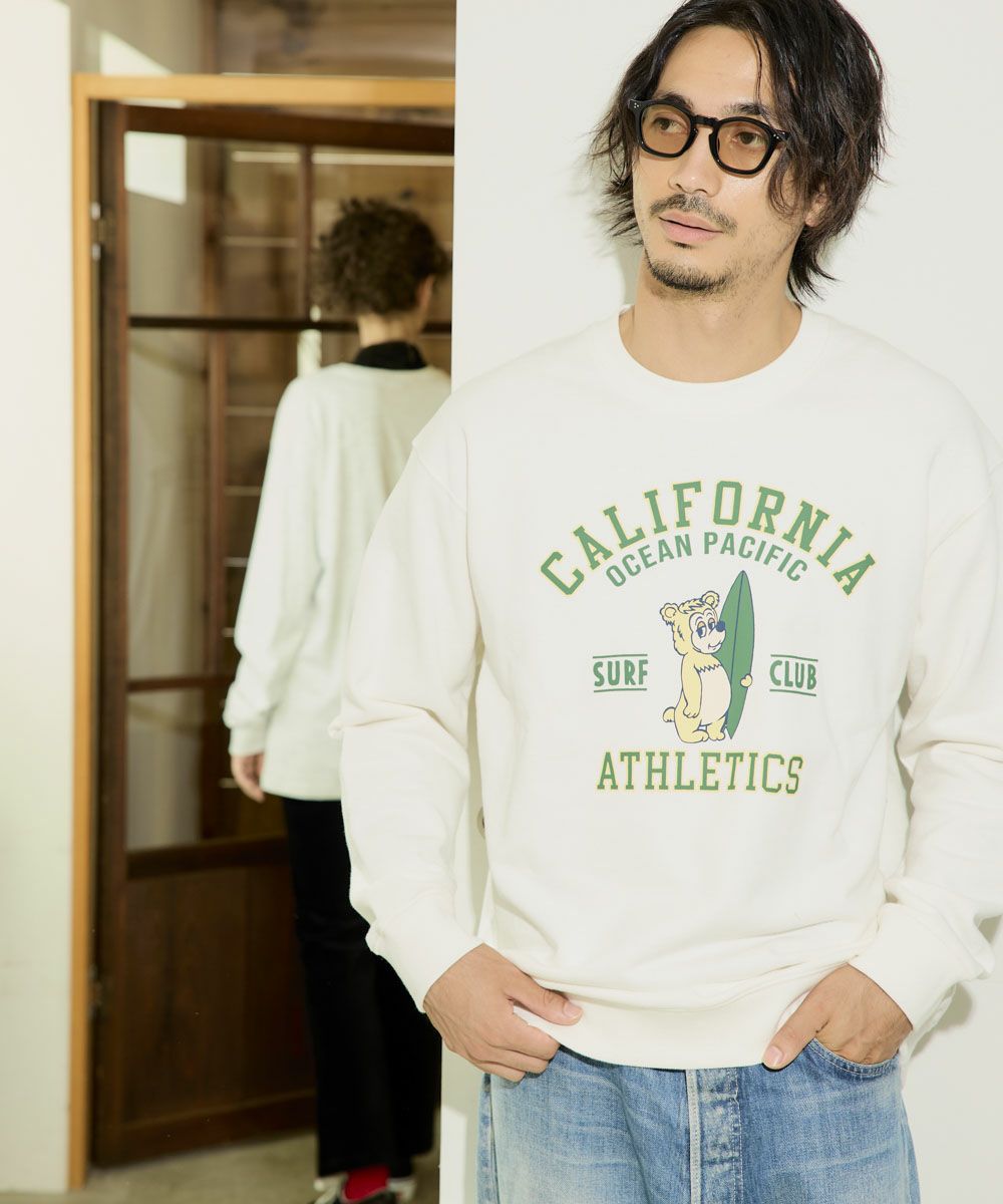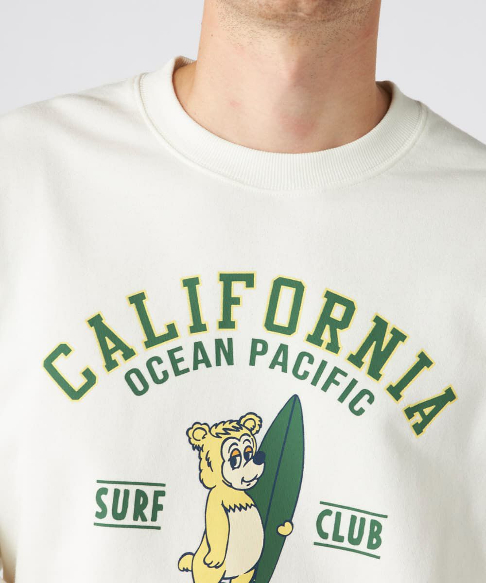 OPの定番アイコン「カリフォルニアベア」がフロントにデザインされたクルースウェットが登場。