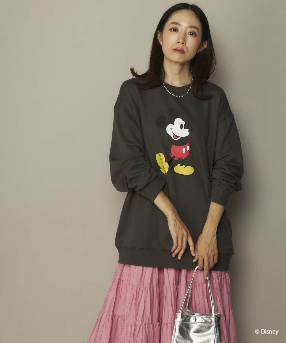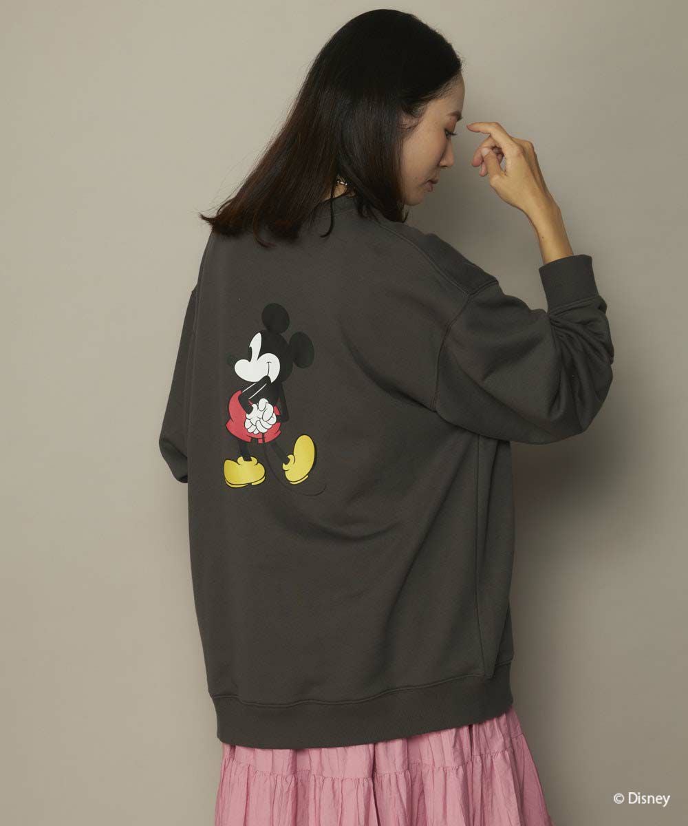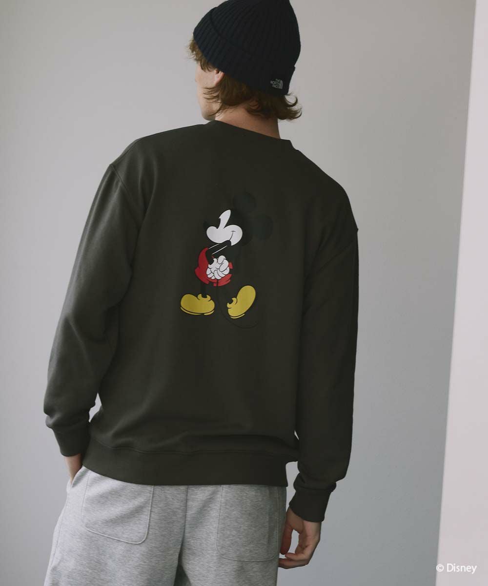 存在感のある大きなミッキープリントが目を惹く、ユニセックス仕様のクルースウェット。