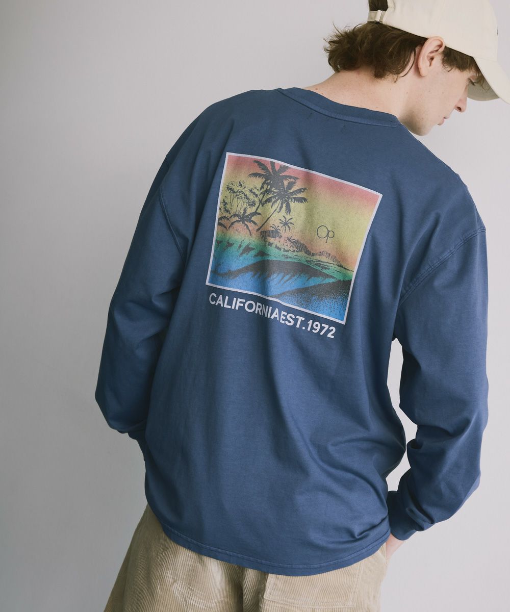 さらにバックにはビーチのプリントを大胆にあしらい、オーシャンパシフィックらしいサーフ&ビンテージテイストが詰まった一枚に仕上げました。
