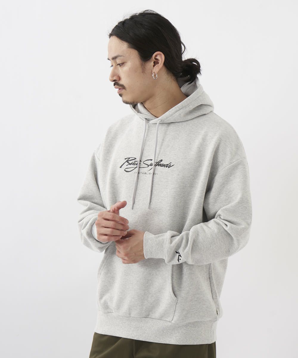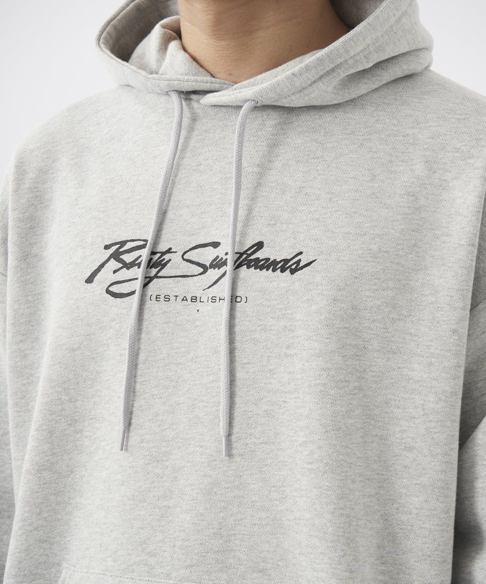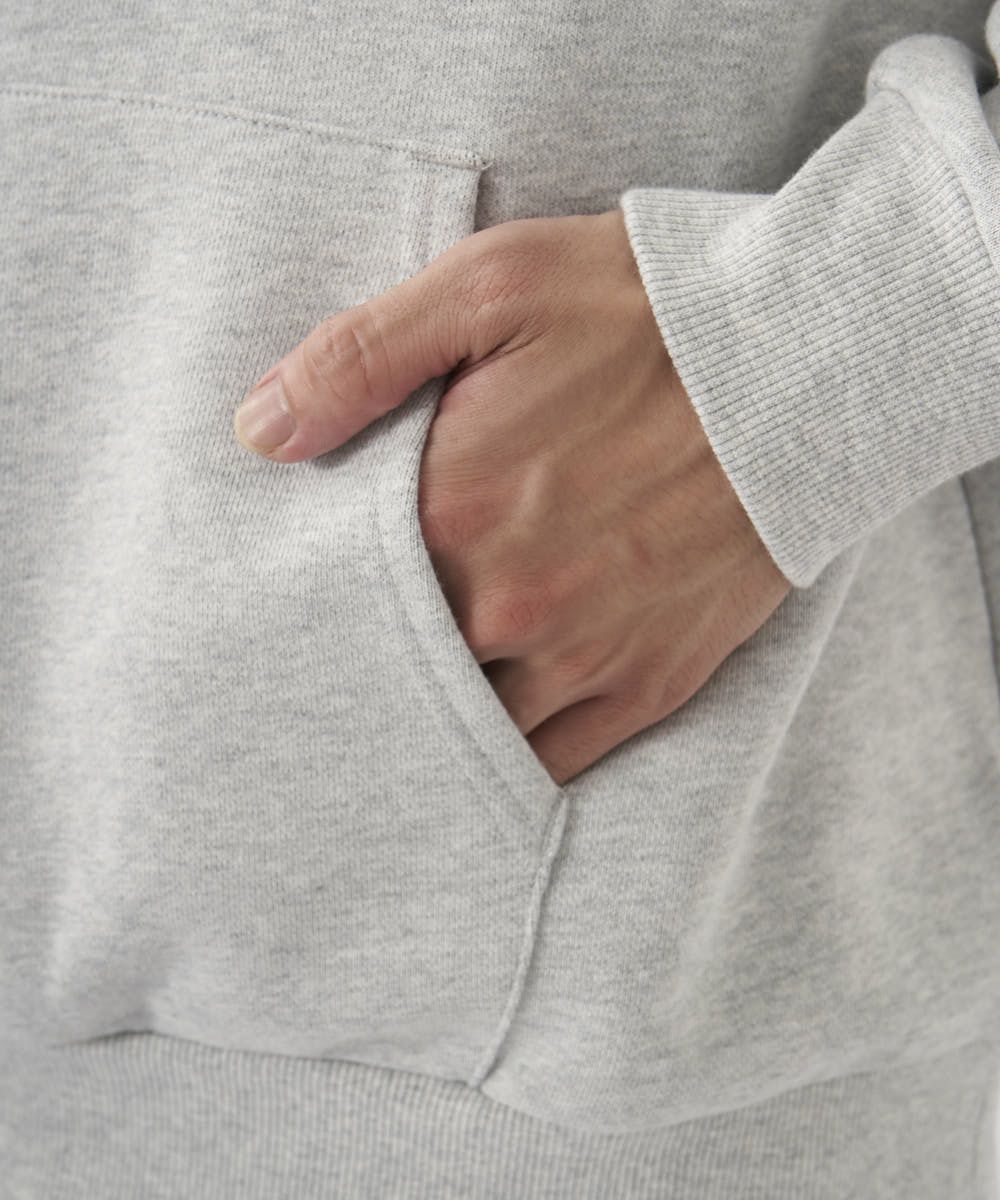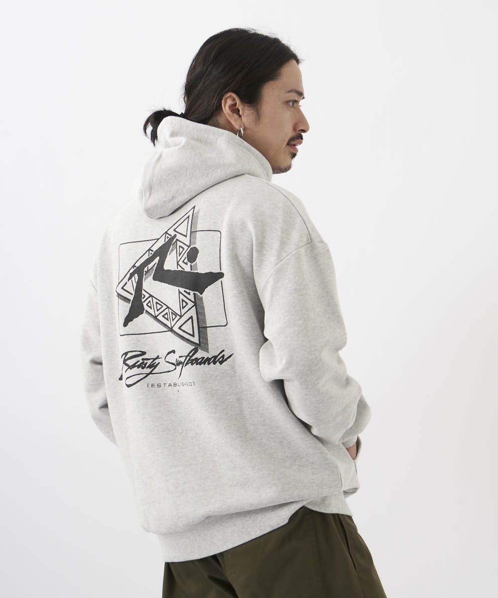 大きなバックプリントが目を惹くスウェットパーカー。