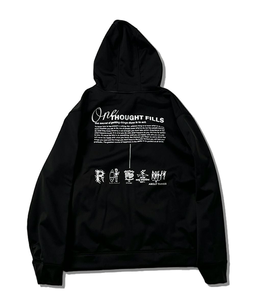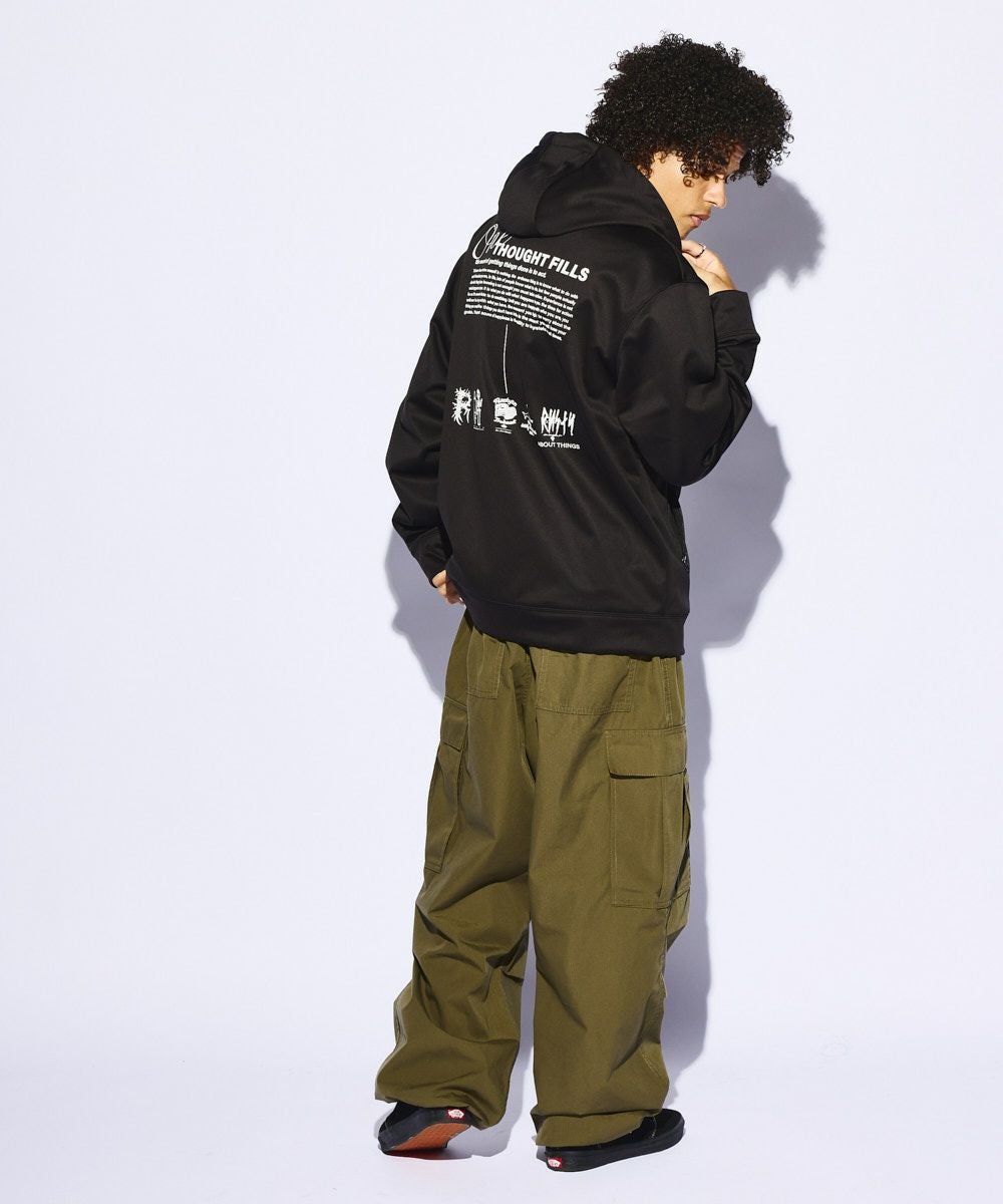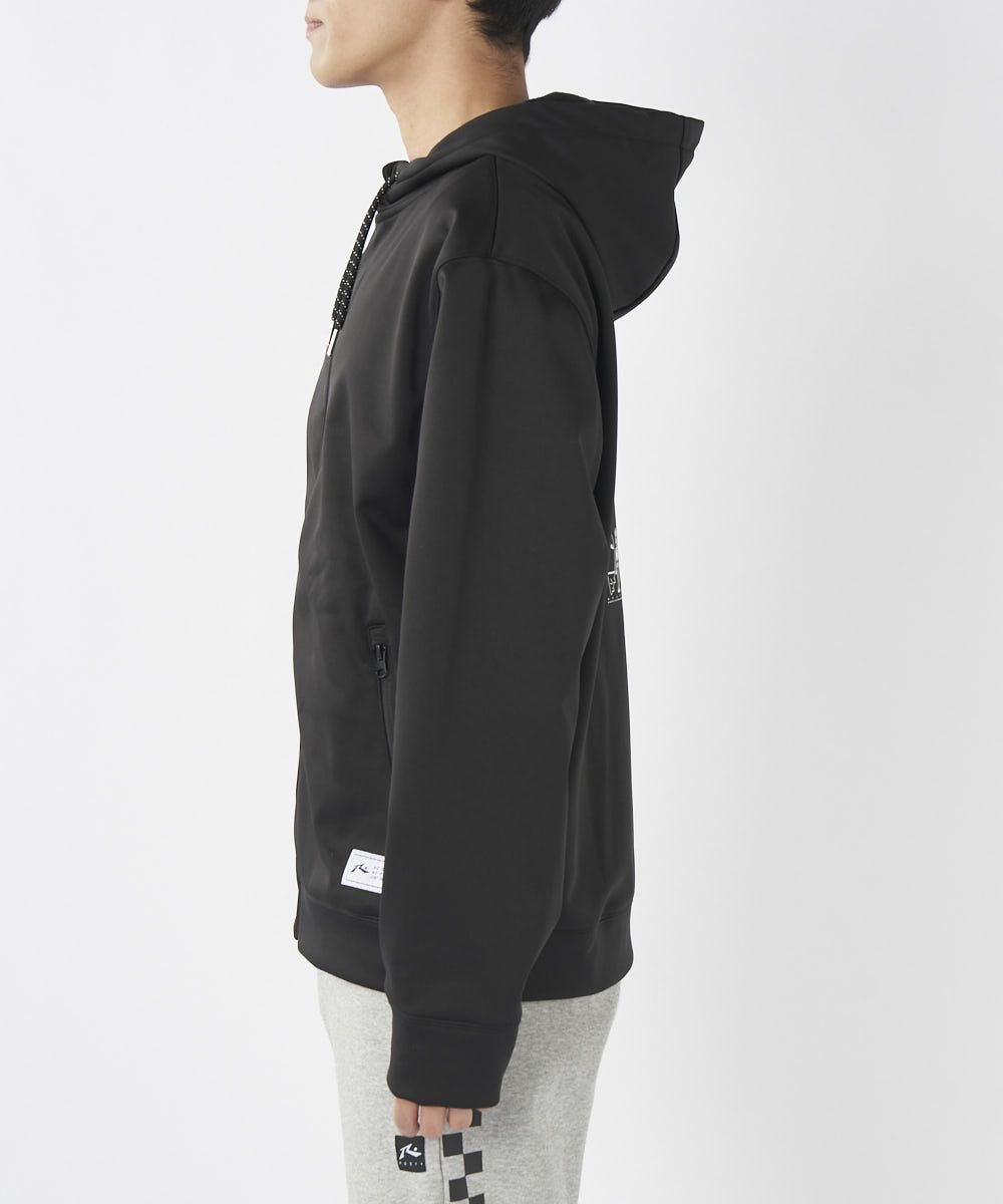 3層ボンディングのフリースパーカー。撥水・保温・ストレッチの機能があり着心地抜群で、寒い冬も安心です◎背中のグラフィックでスタイリッシュに。