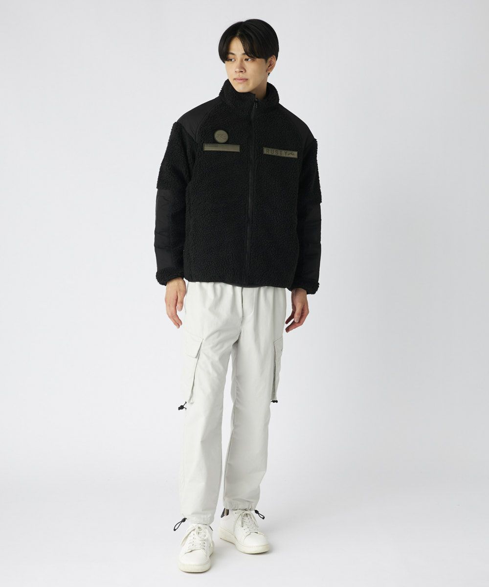 裏はマットな質感のタフタで、スポーティかつ都会的な印象。表は柔らかなボアフリースで、カジュアルで暖かみのあるスタイルに。