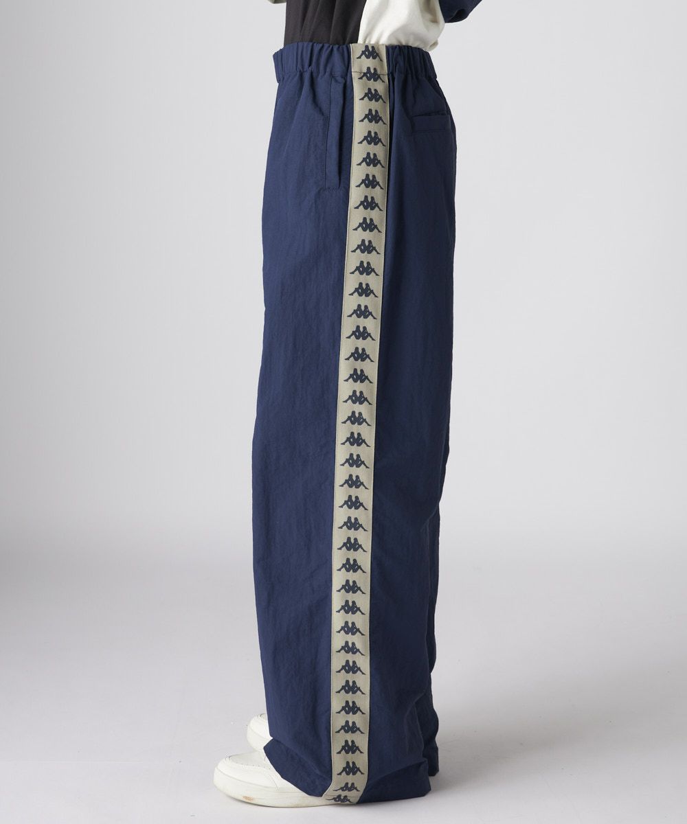 テープラインが特徴のナイロン素材のストレートパンツです。ストーレートラインを採用しトップス とのコーディネイトも幅が広がります。