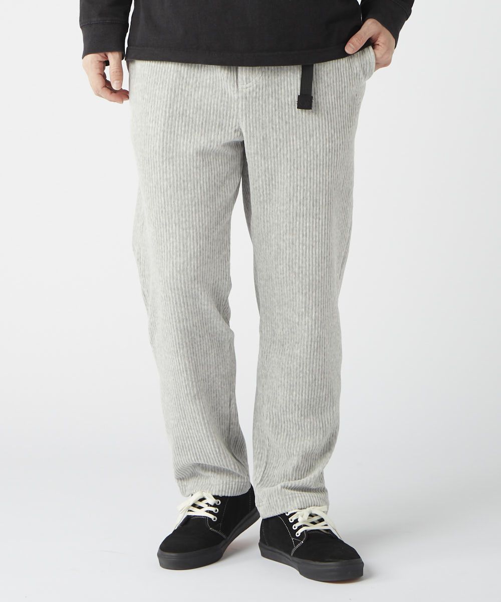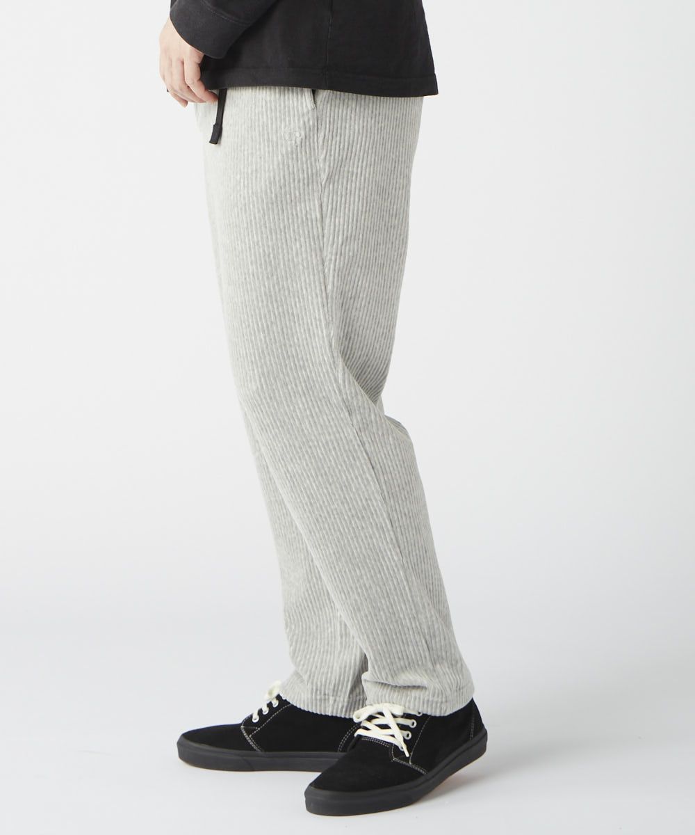 ワイドテーパードシルエットがおしゃれなカットコーデュロイパンツ。