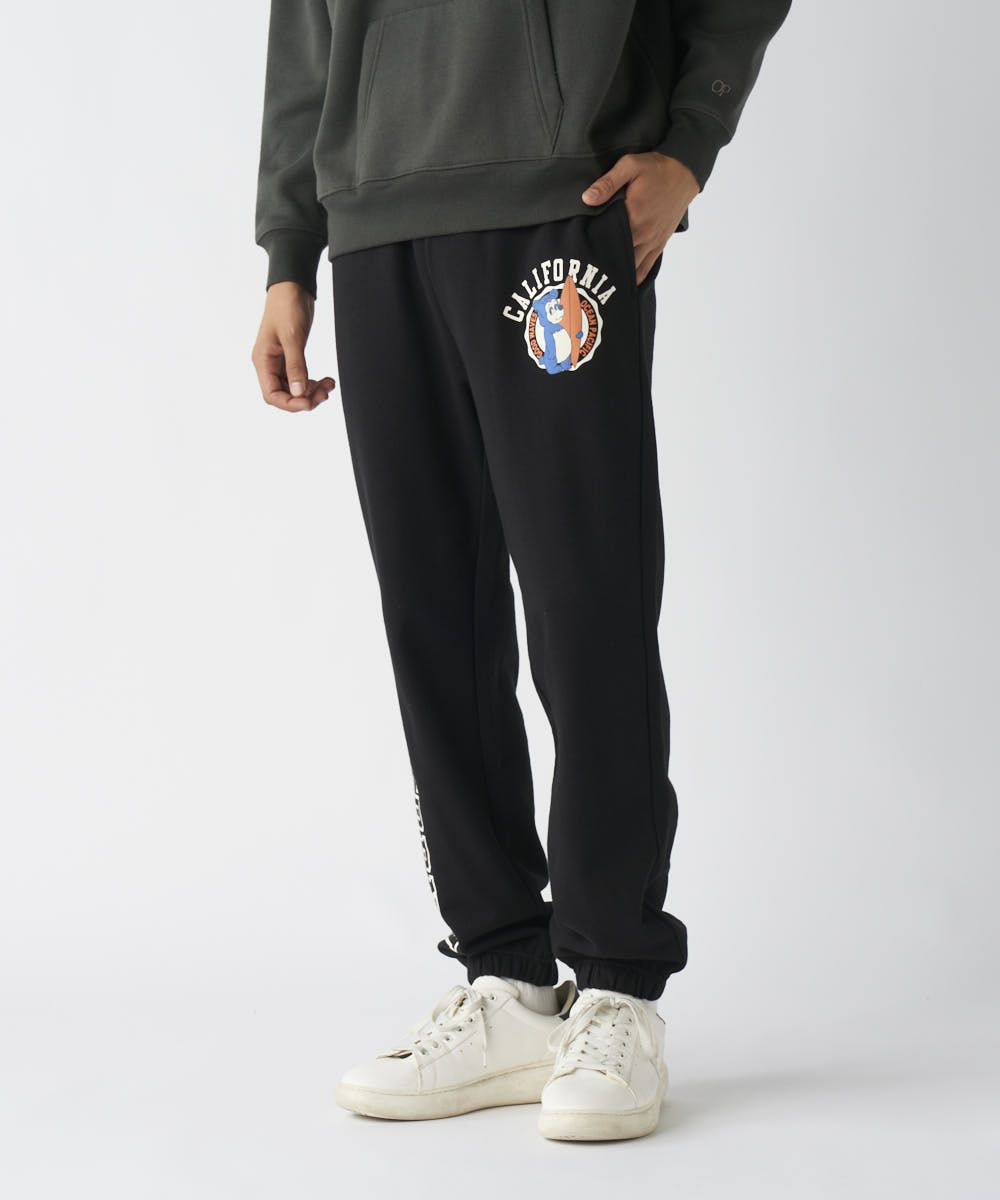 裏毛素材で快適な履き心地。カリフォルニアベアのデザインが映える、遊び心あるスウェットパンツ。