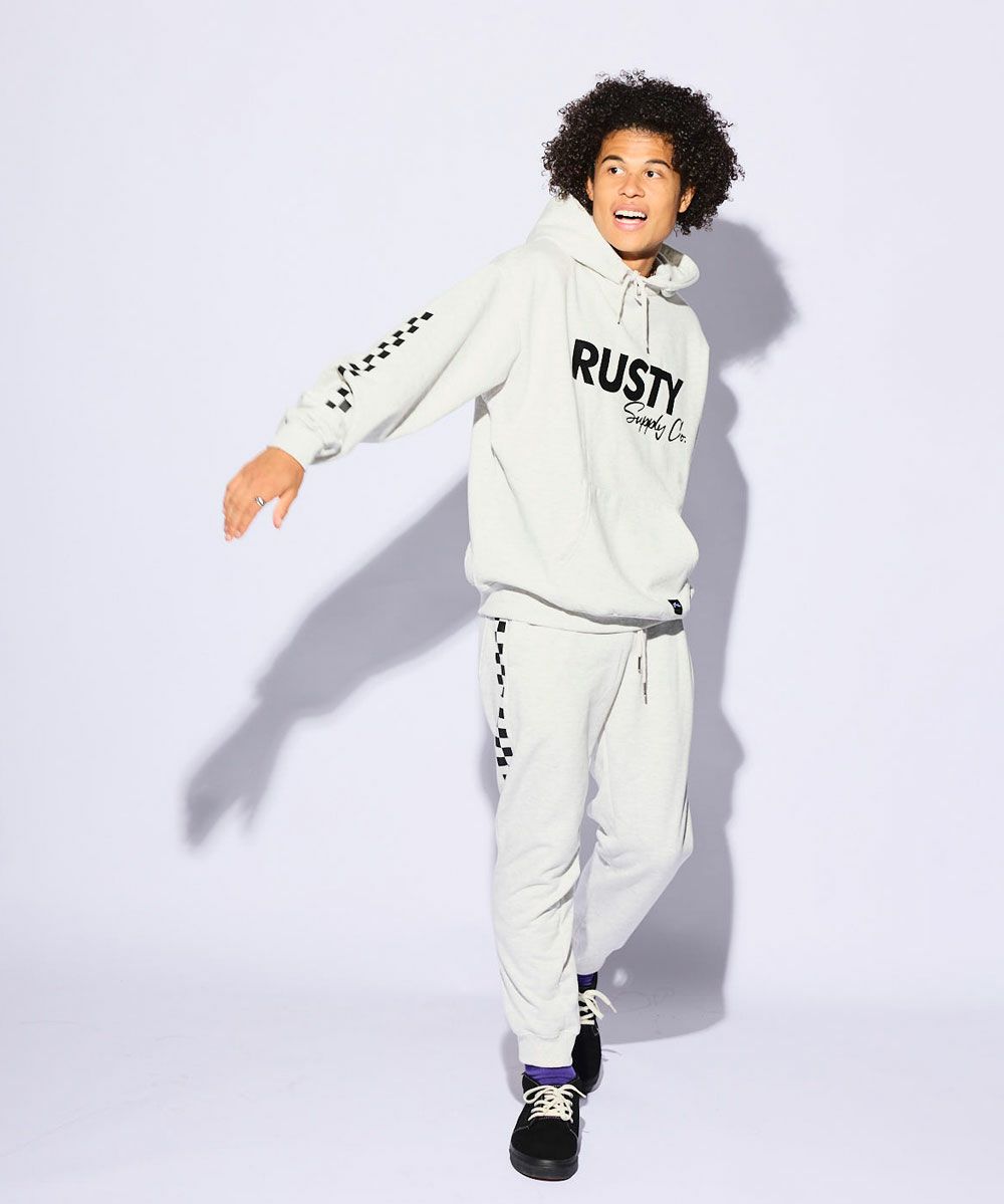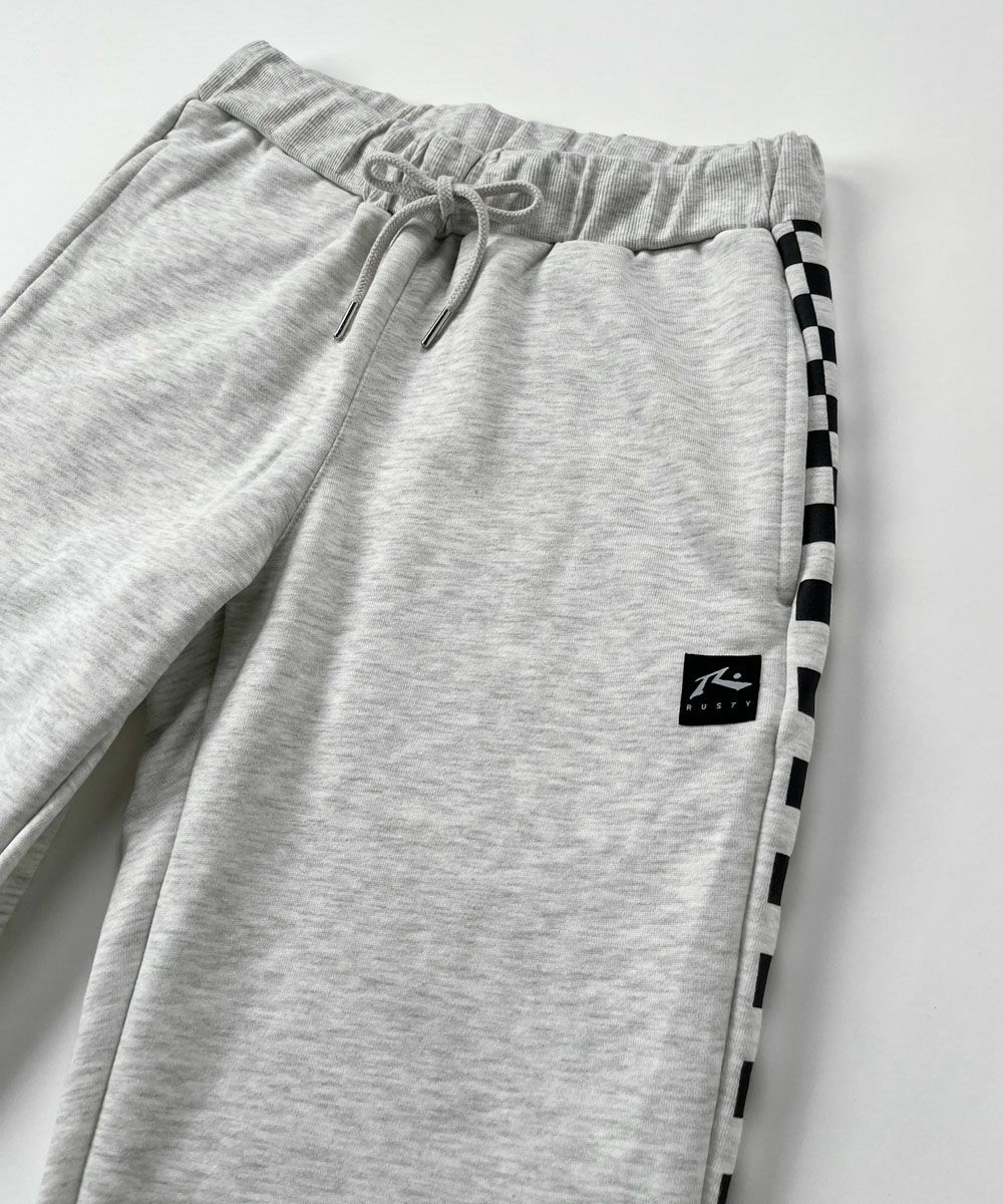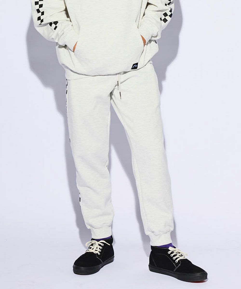 サイドのチェッカープリントがポイントの裏起毛スウェットパンツ。クルースウェットやプルオーバーパーカーとセットアップで着用いただけます。男性はもちろん女性でもオーバーサイズで着ていただけます!