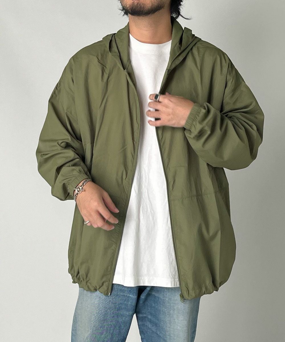 トレンドの軽くて薄い素材のフルジップUVナイロンパーカー。