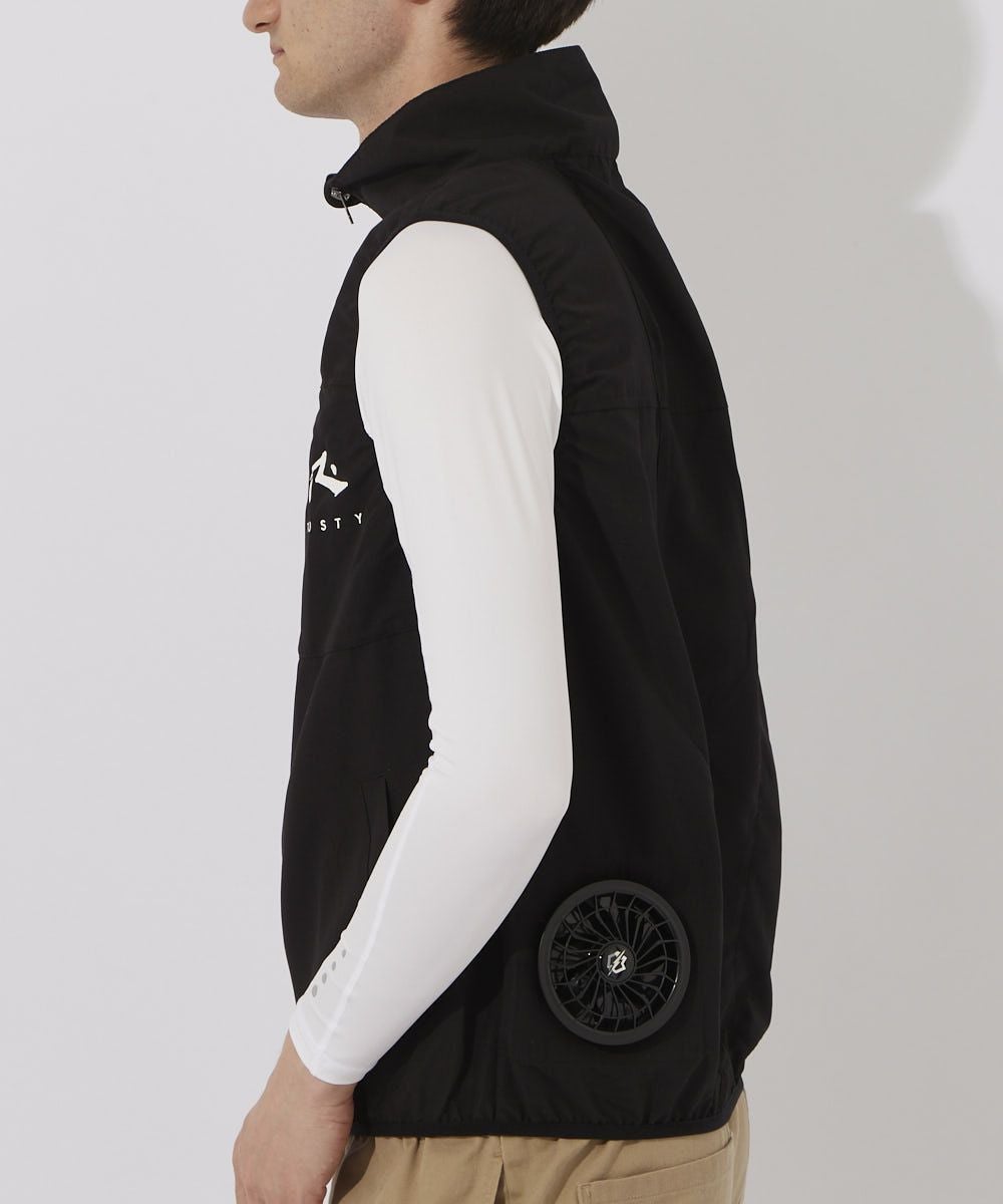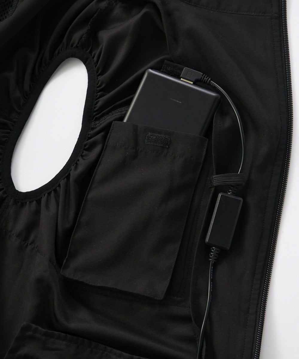 取り外し可能なファンはベスト内に風を循環させることで、効果的に体温を下げます。