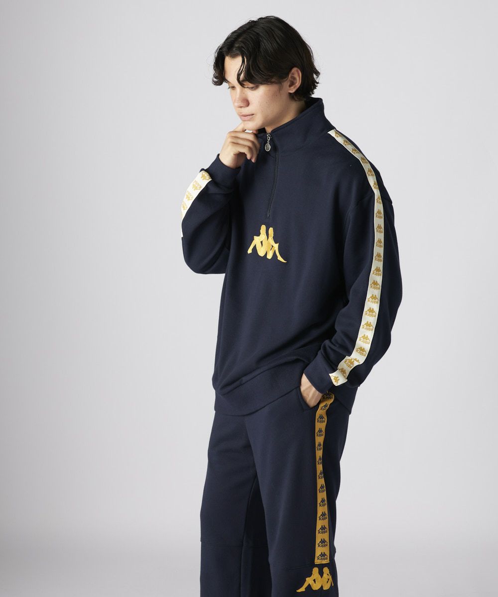 テープラインが特徴の裏毛のハーフジップトラックジャケットです。オーバーサイズシルエットで、 ルーズなシルエットラインに仕上がっています。