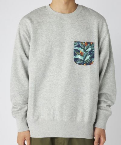 胸ポケットに総柄プリントをあしらった、遊び心のある裏起毛スウェット。