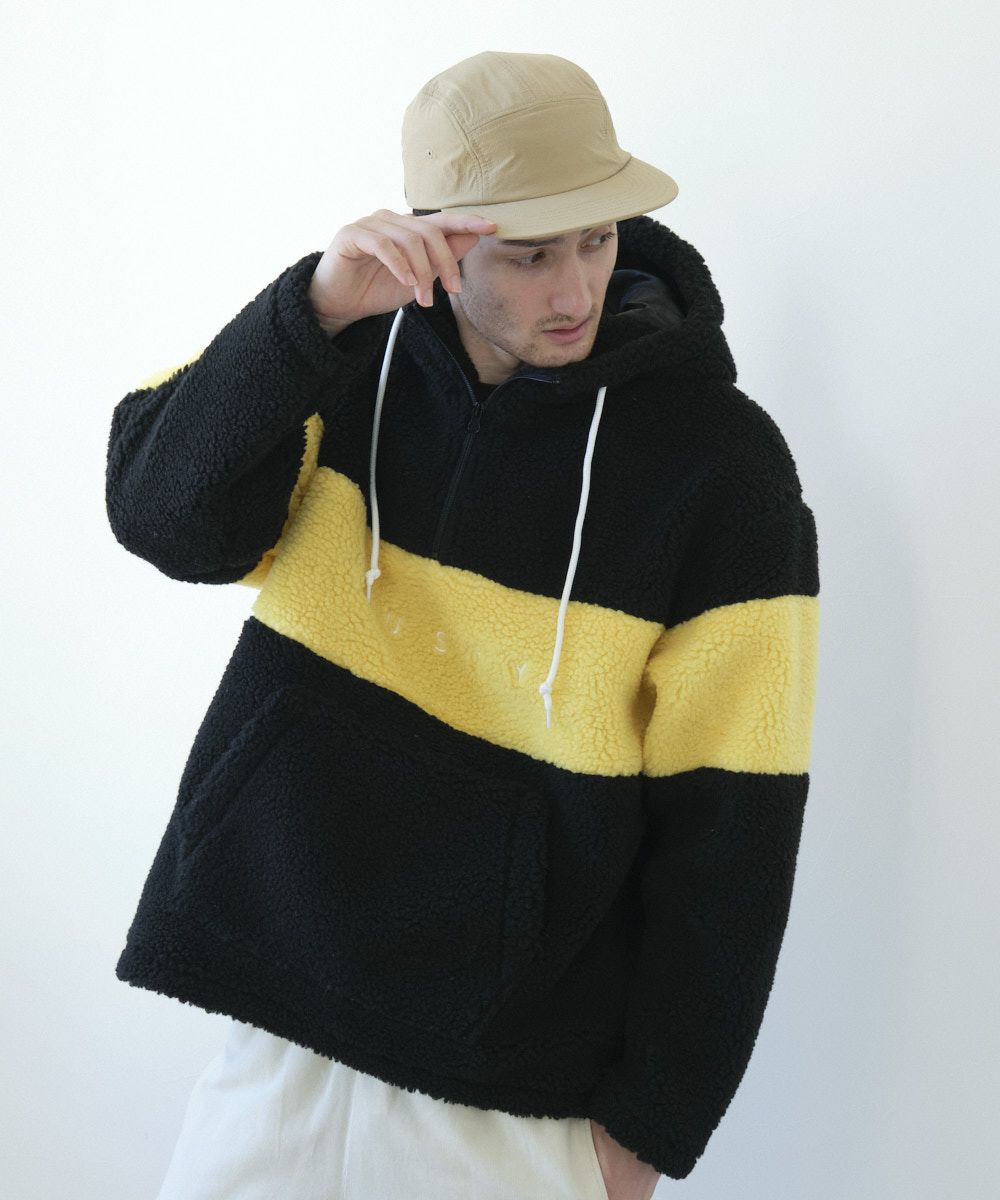 非常に軽いポリエステル素材で、襟元と裾のハーフジップで脱着簡単!トレンドのゆったりしたシルエットパーカーです。