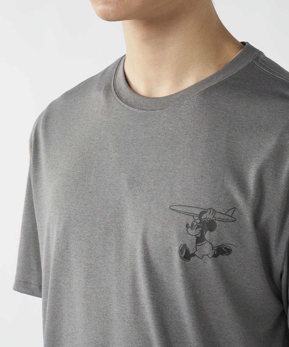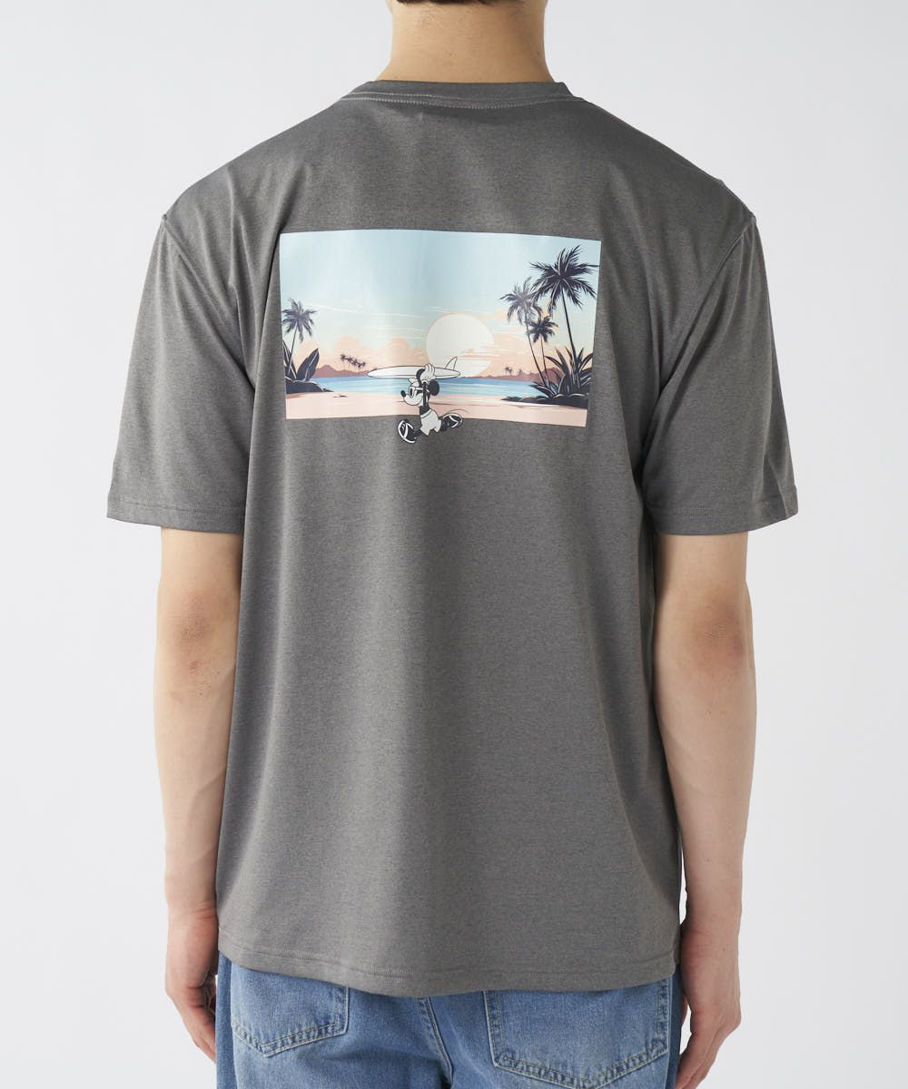 バックにはビーチでサーフボードを持ったミッキーがプリントされた、着るだけでハッピーになれる1枚。