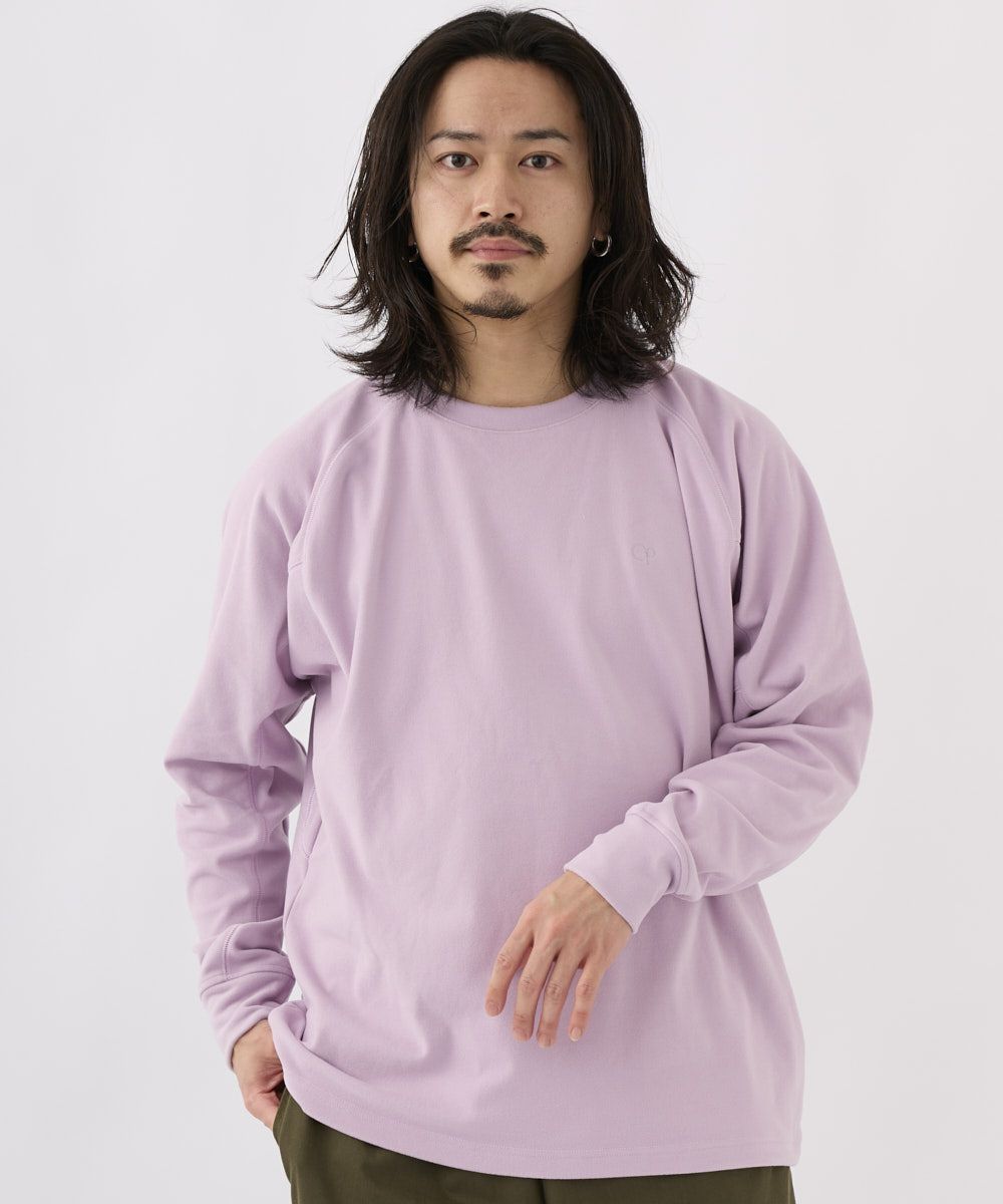 メンズ 同色ワンポイント刺繍 長袖Tシャツ