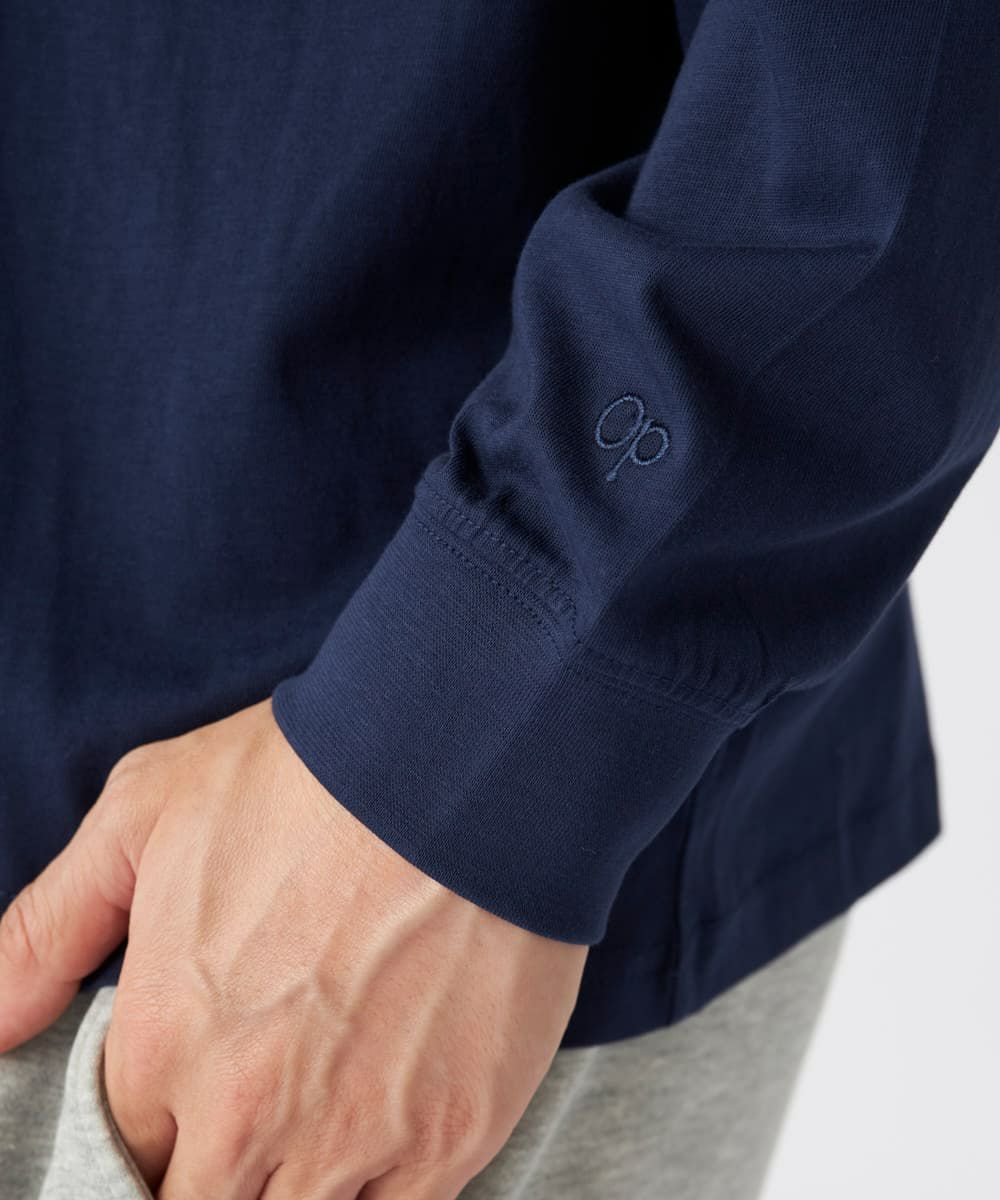 胸元にさりげなく施されたワンポイントデザインが、ベーシックなスタイルに個性をプラス。