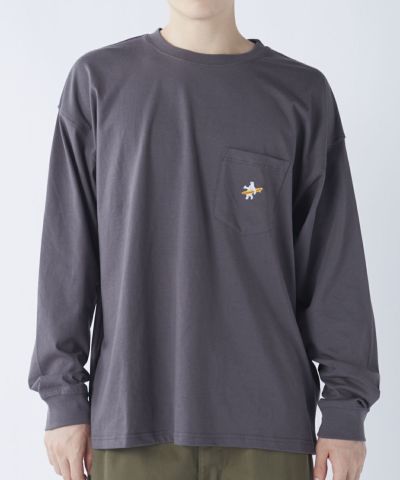 メンズ 胸ポケット ベア刺繍 ロングTシャツ