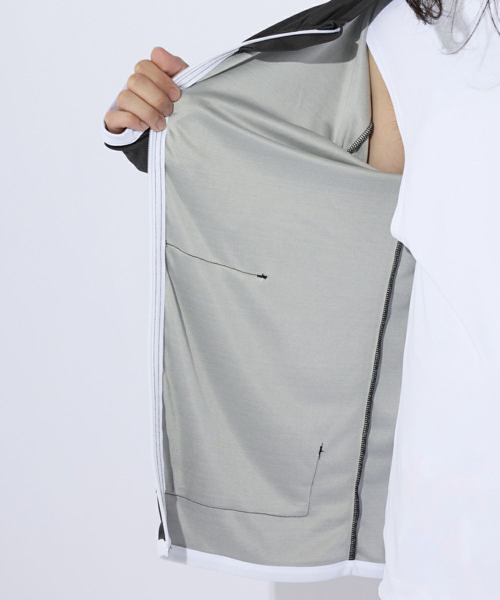 ポリエステル100%のスムース素材で、軽量・吸汗速乾・UVカット機能を兼ね揃えた水陸両用ウェアです。