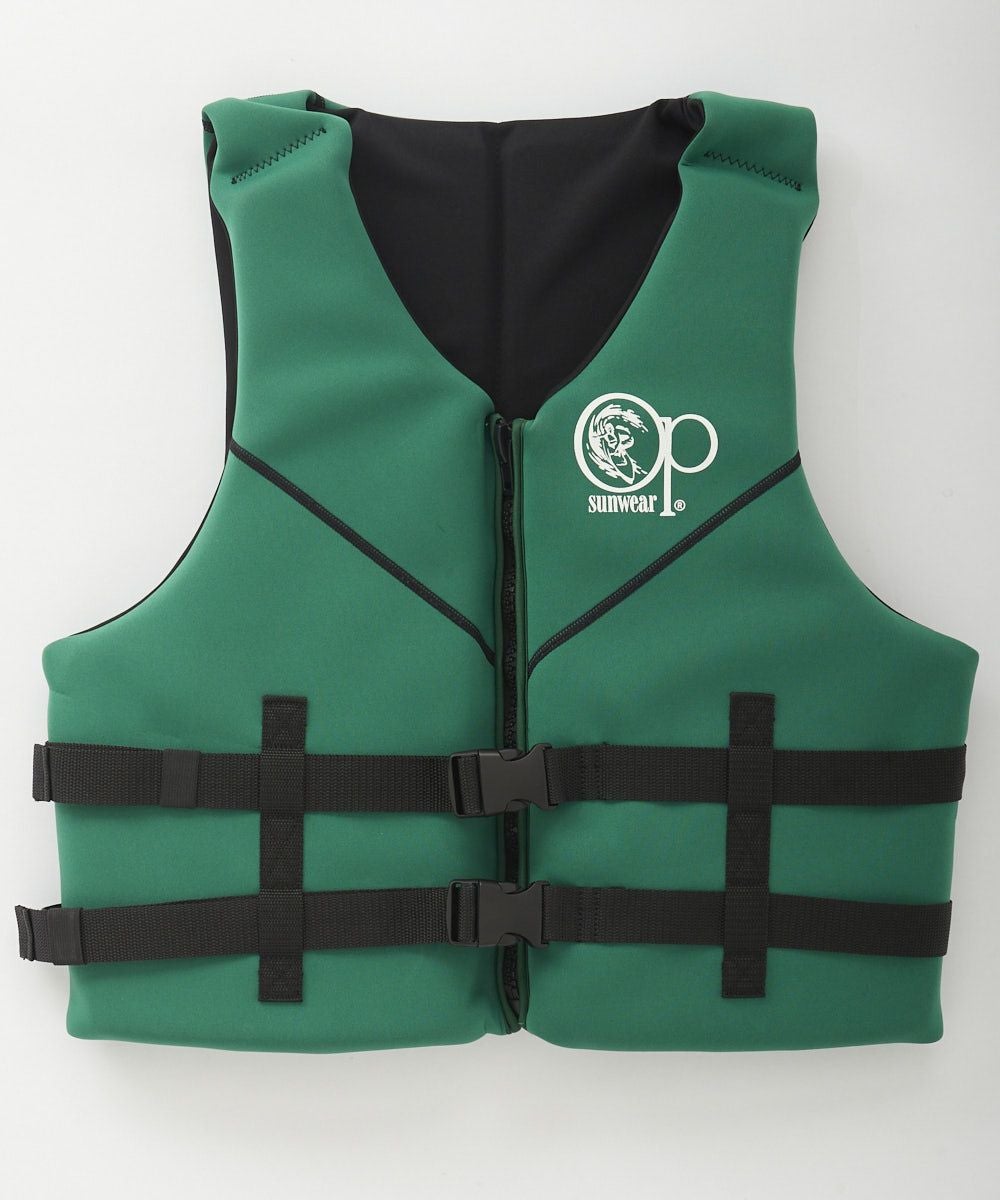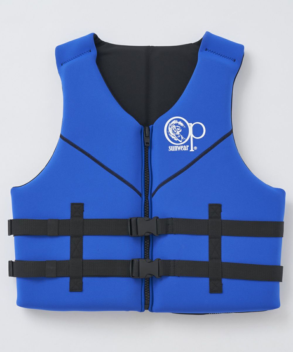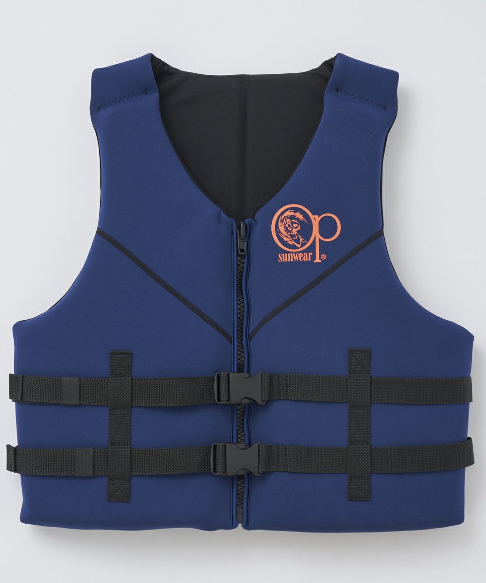 伸縮性、耐熱性、耐水性などに優れたネオプレーン素材のメンズフローティングベスト。