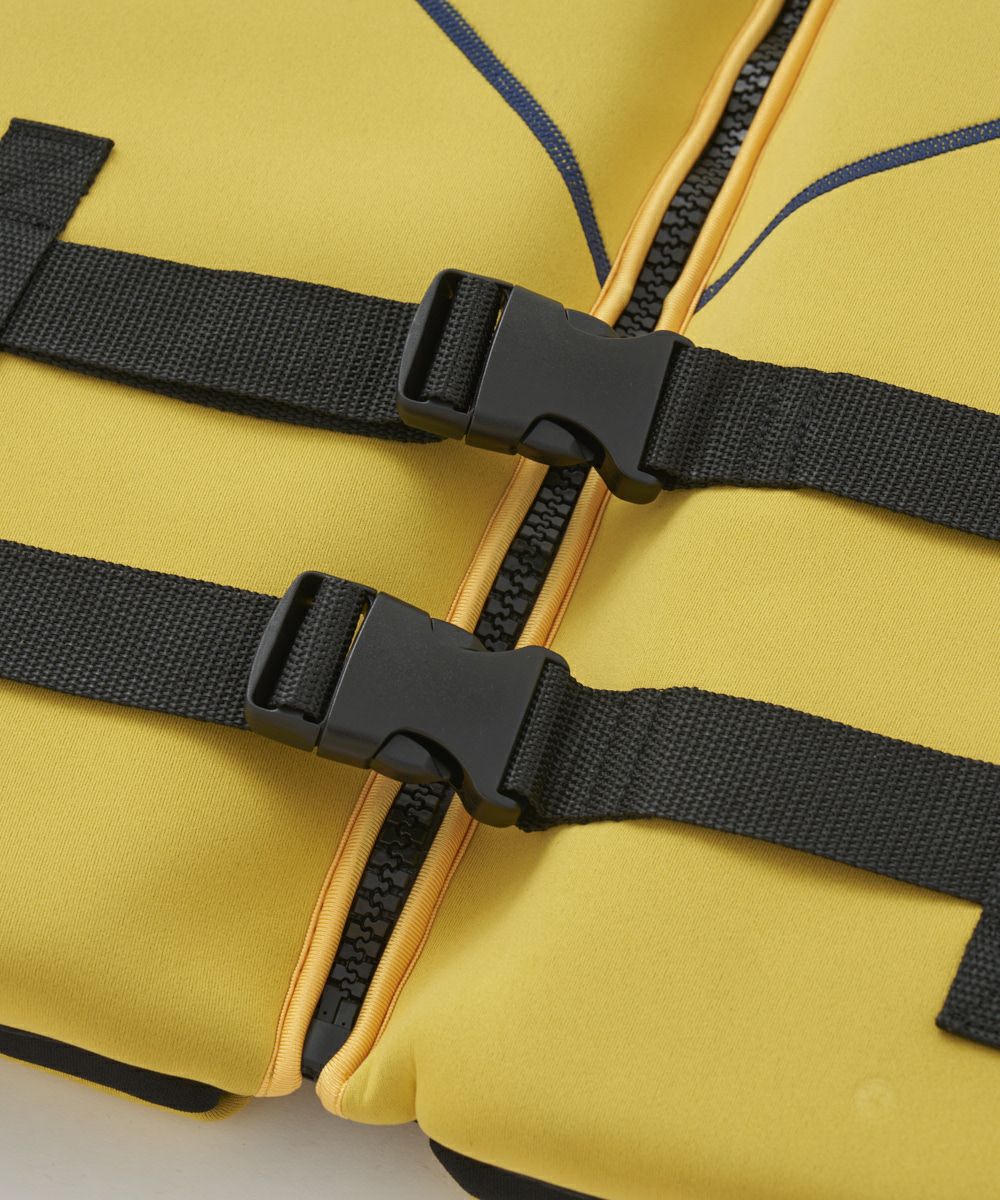 伸縮性、耐熱性、耐水性などに優れたネオプレーン素材のメンズフローティングベスト。
