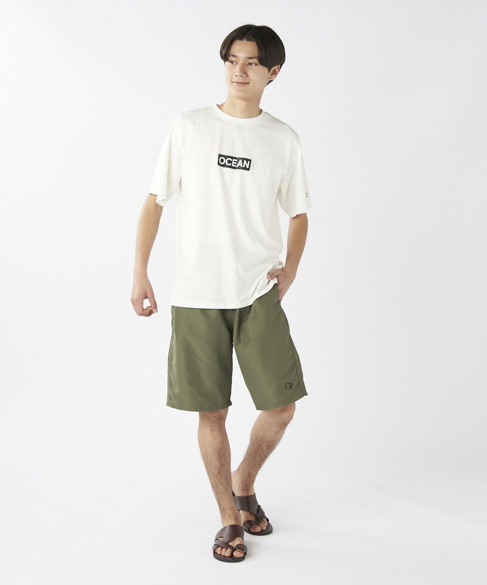 フロントに「OCEANPACIFIC」のロゴを配置し、その中にカリフォルニアをイメージさせるモチーフの総柄をプリントした、シンプルながらも個性的なデザインでリゾート感を演出します。