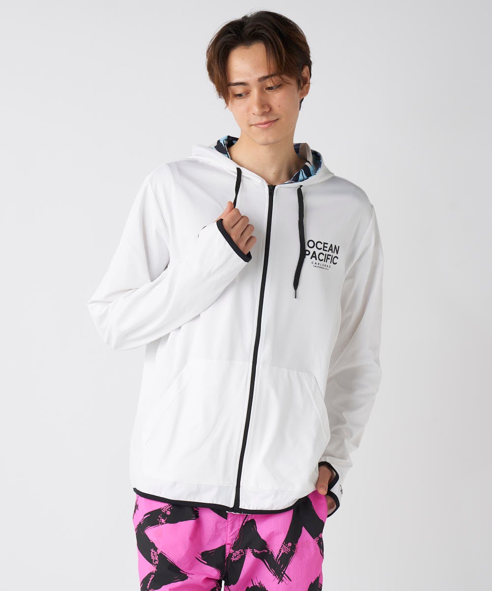 PEARTEX素材使用!軽量でソフトな肌触りのUVパーカー。 吸汗速乾・UPF50+の機能性とフード内にリーフ柄をあしらったシーズン感が魅力