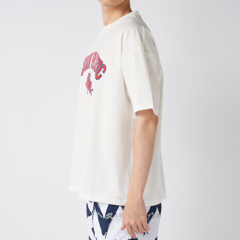 PEARTEX素材のUVTシャツ。水陸両用で吸汗速乾・UPF50+対応、軽量でソフトな肌触り。 フロントに可愛いクマのキャラクターを配置し、機能性と遊び心を兼ね備えた一枚。