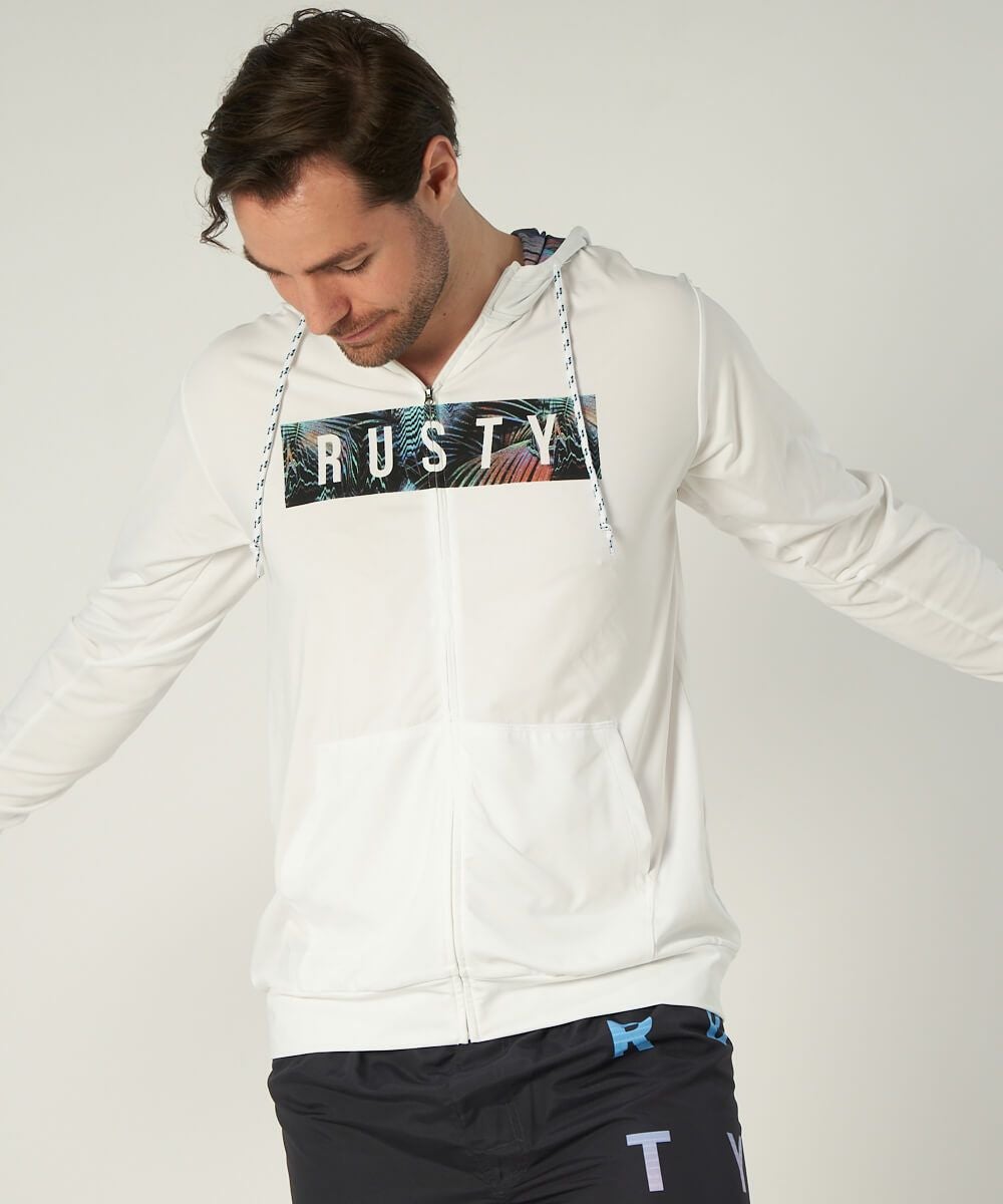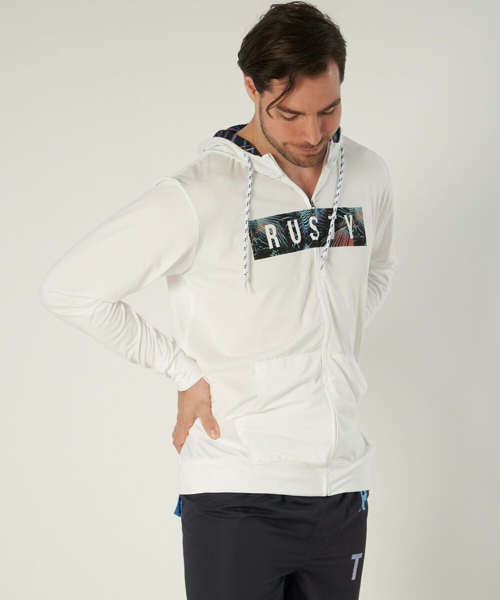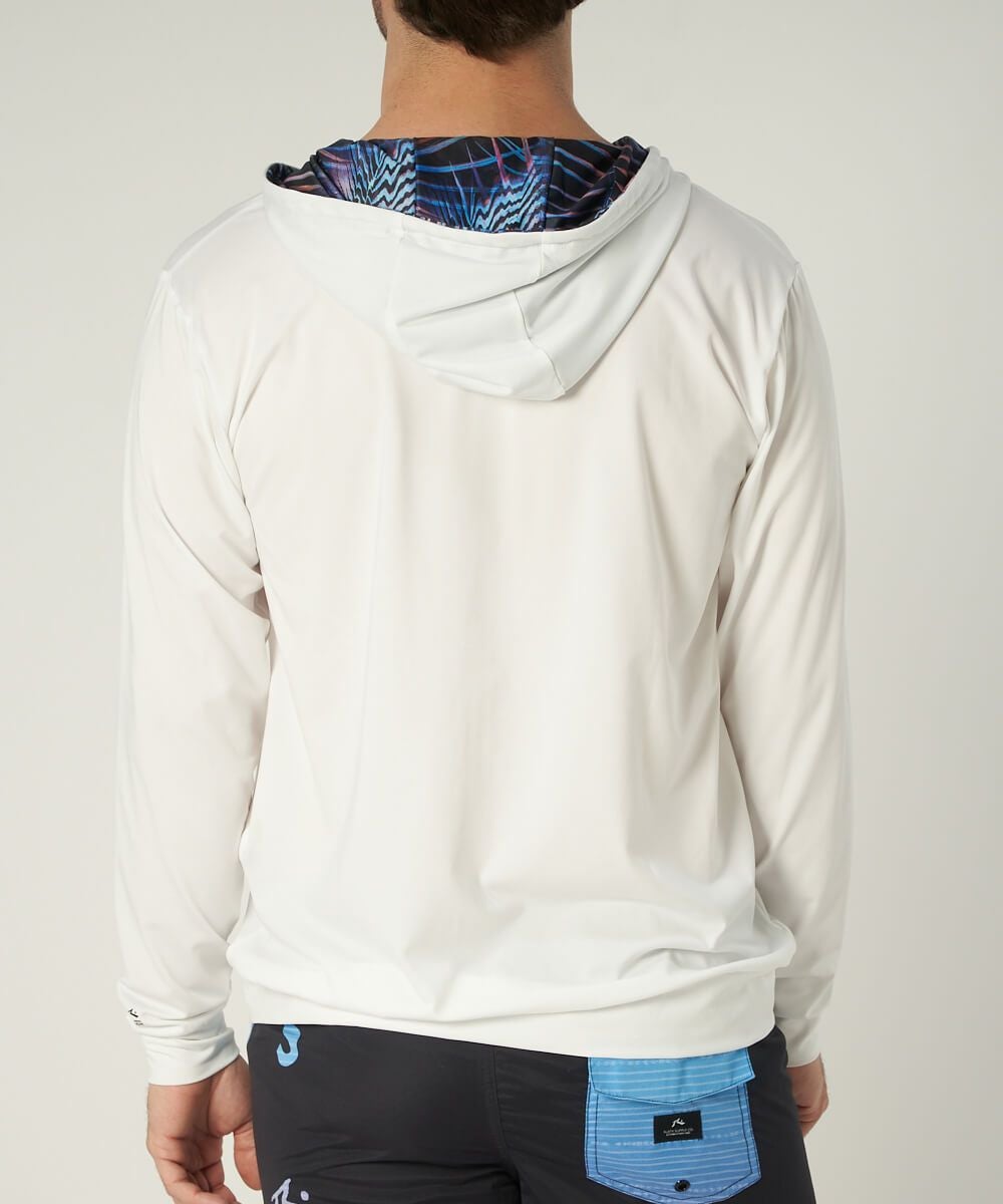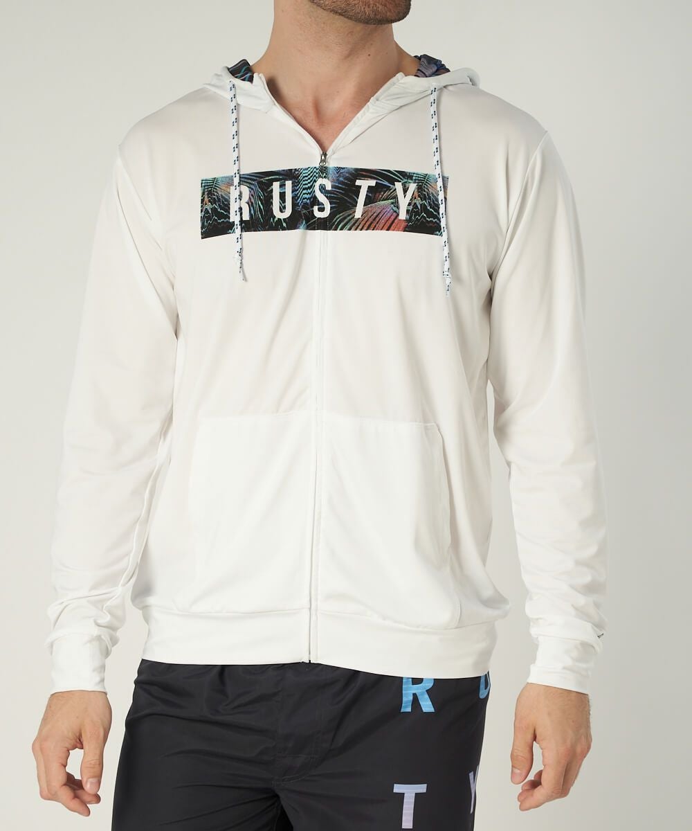 タウンでもレジャーでもOKなソフトタッチのスムースハイブリッドラッシュパーカーハイブリッド、UVCUTトランクスとリンクコーデがオススメ