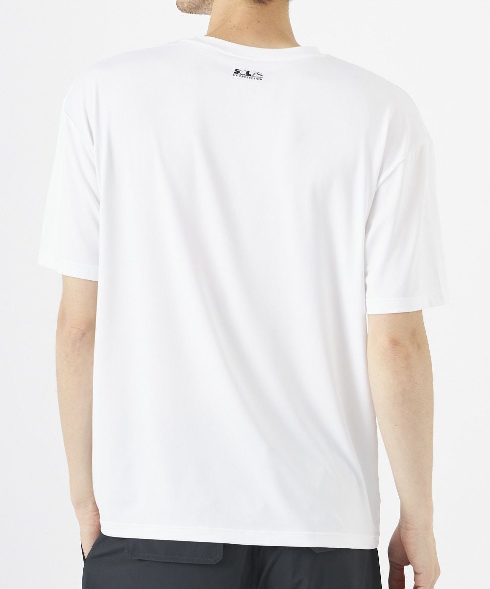 UV CUT、吸汗速乾機能を金揃えたリサイクルポリエステル糸の天竺素材を使用。 胸にブランドロゴ、背中にはSURF CO.のグラフィックをプリント。