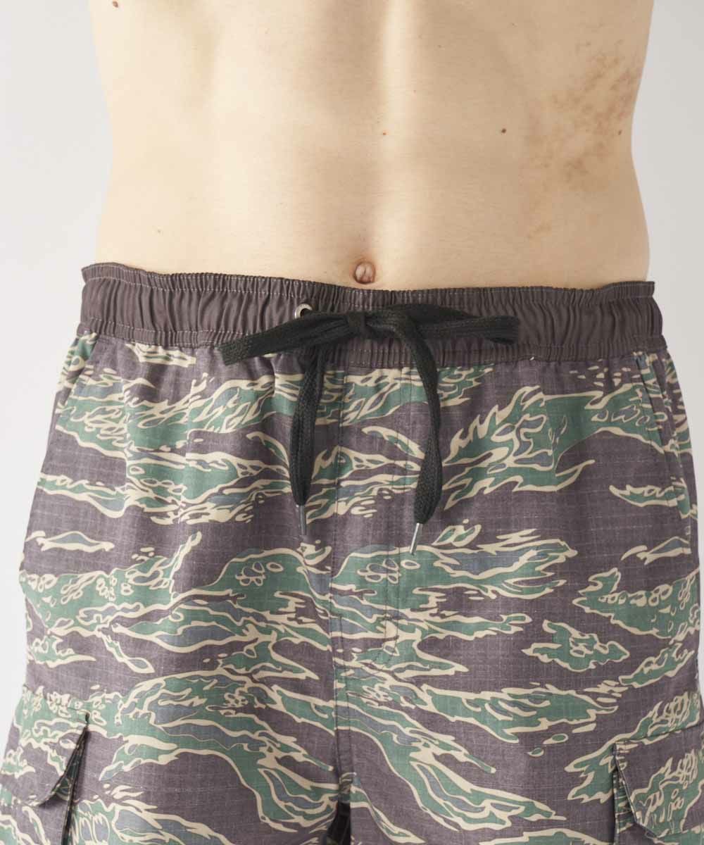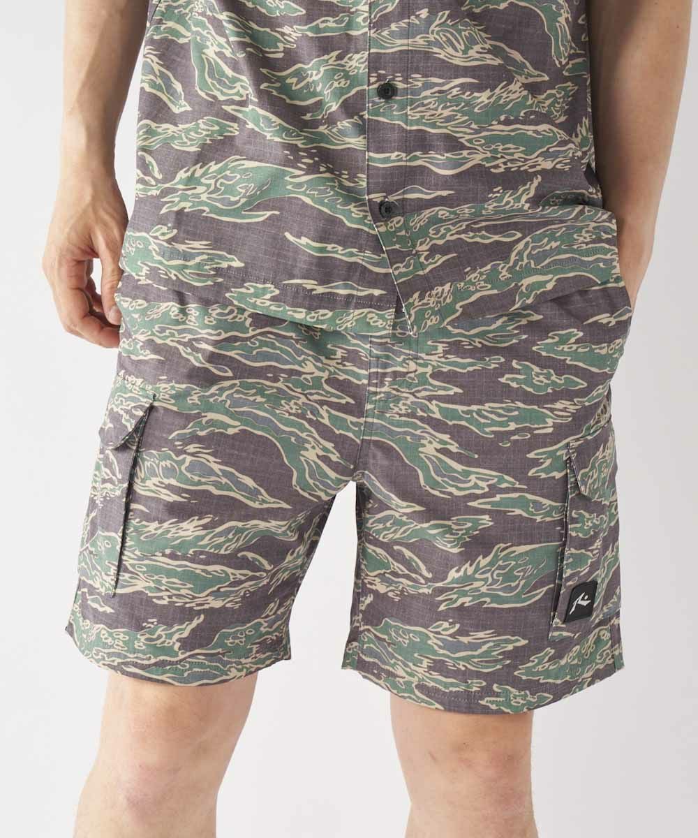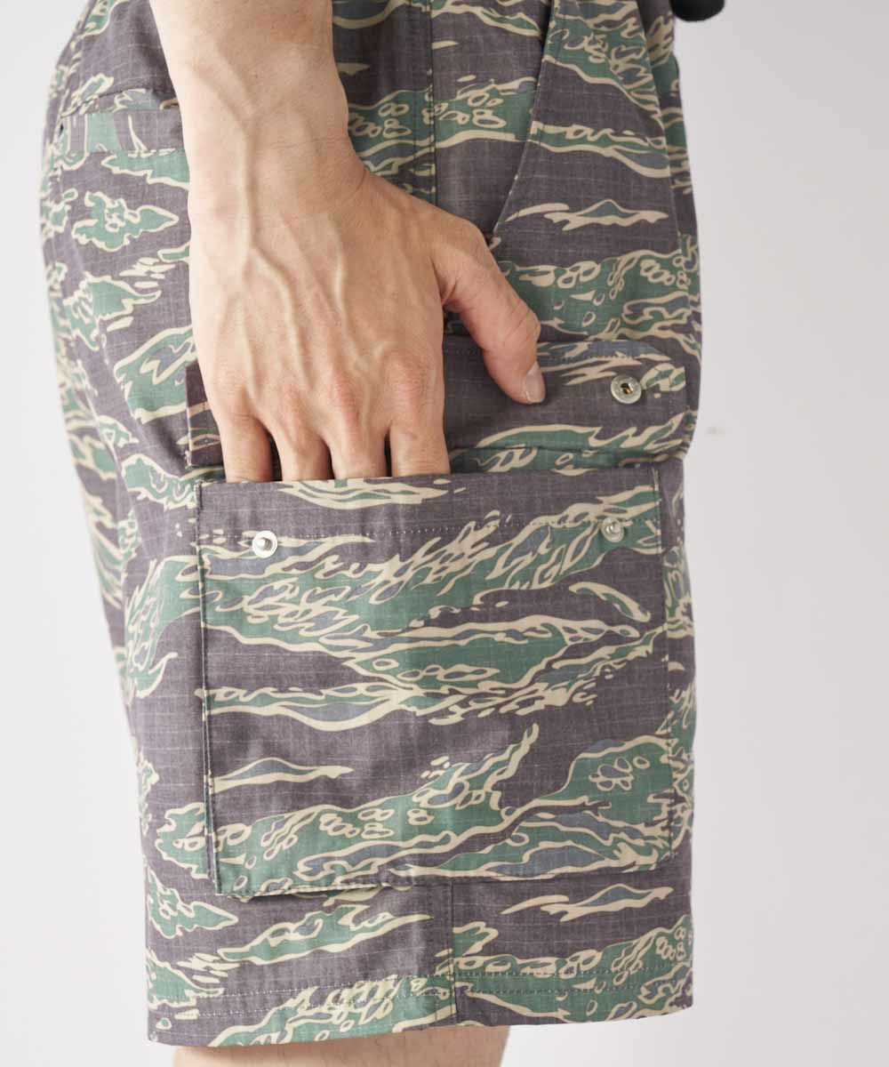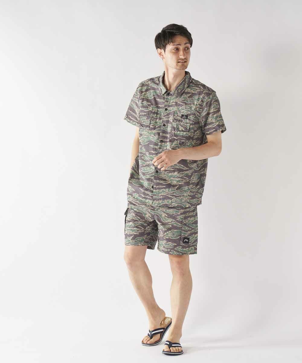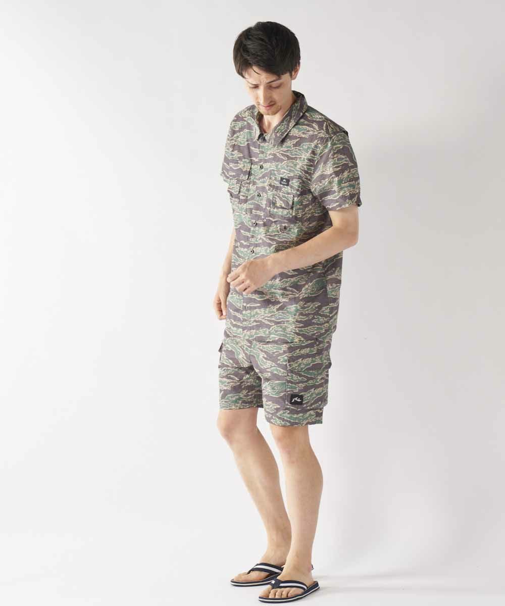 綿ライクな表面に仕上げた綿とポリエステルの混紡素材を使用。 旬なカーゴポケットデザインは水回りはもちろん、アウトドアシーンやタウンユースでも大活躍する1点です。
