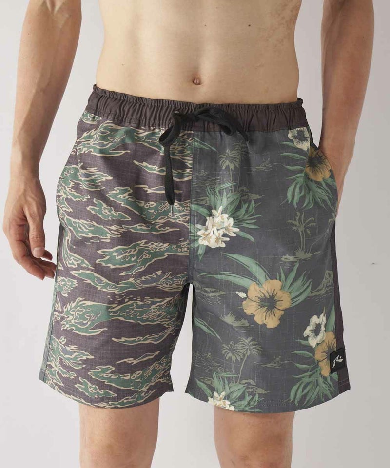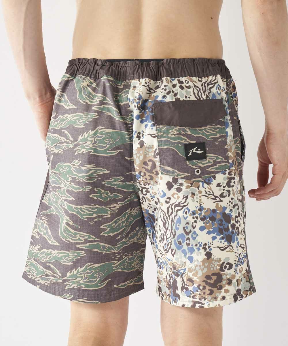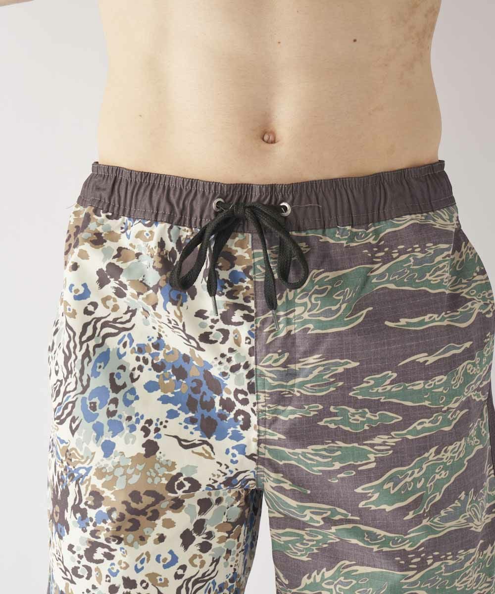 綿ライクな表面に仕上げた綿とポリエステルの混紡素材を使用。 アシンメトリーにデザインされたボードショーツは水回りはもちろんのこと、アウトドアシーンやタウンユースでも大活躍する1点です。