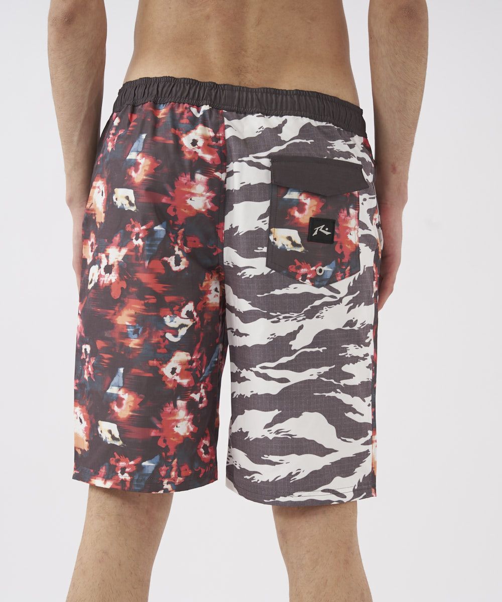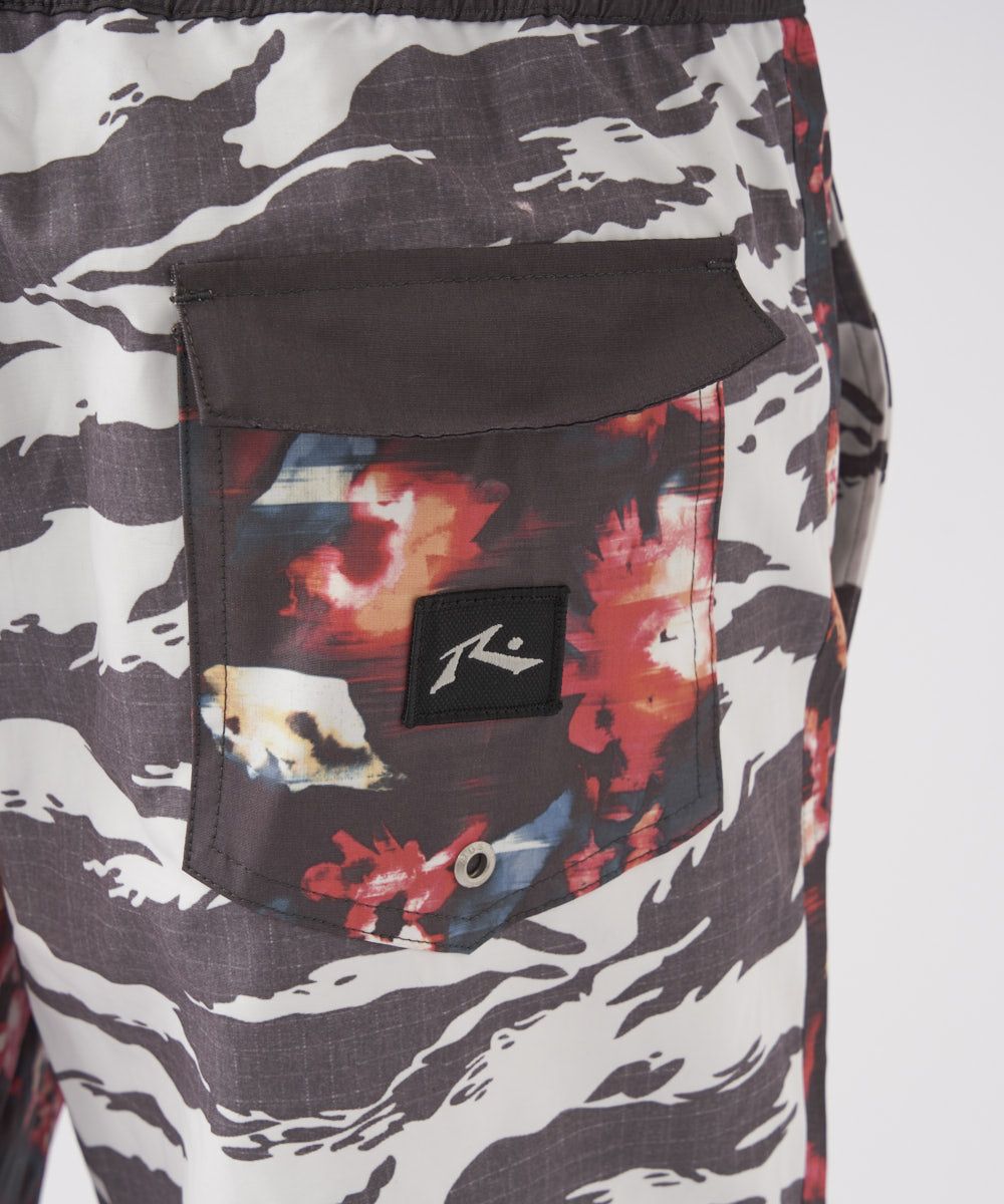 綿ライクな表面に仕上げた綿とポリエステルの混紡素材を使用。 アシンメトリーにデザインされたボードショーツは水回りはもちろんのこと、アウトドアシーンやタウンユースでも大活躍する1点です。