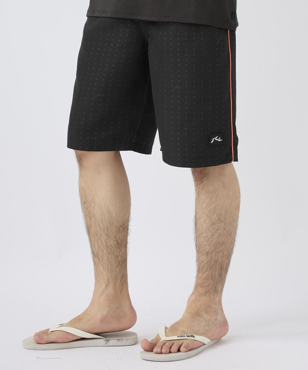 シーズンテーマの蛍光フラッシュカラーをサイドパイピングとベルト裏、フラップなどに配置し、見頃のマイクロ生地にはR-DOTのエンボス加工を施しています。インナーメッシュ付きトランクス。