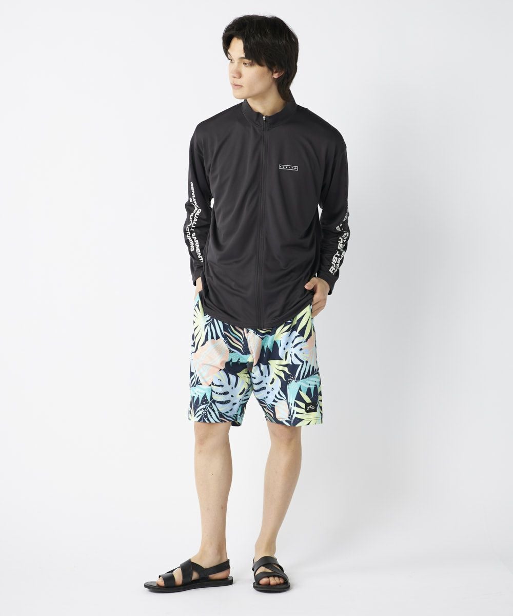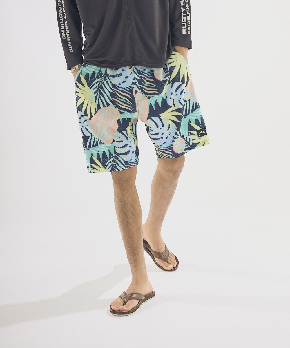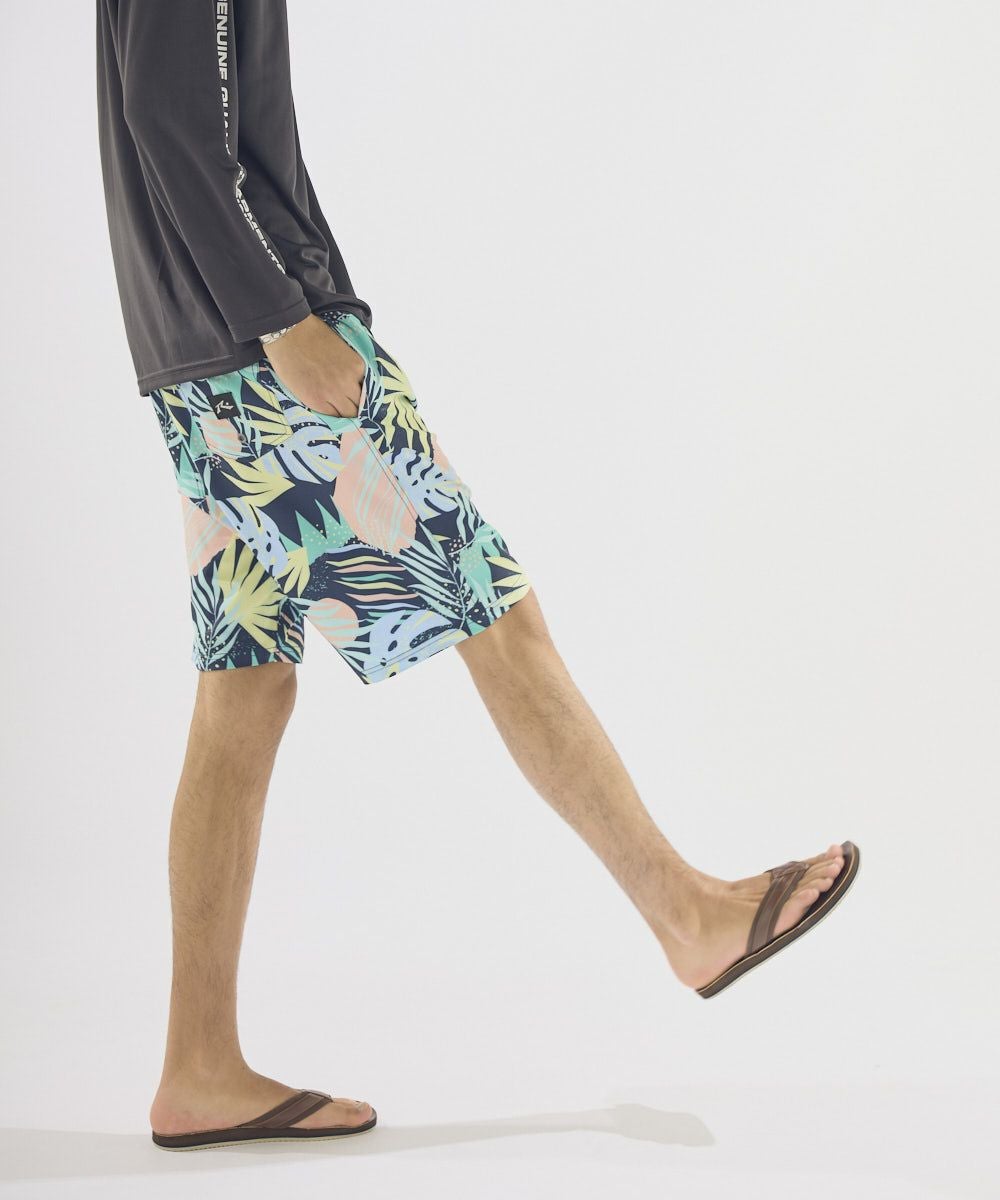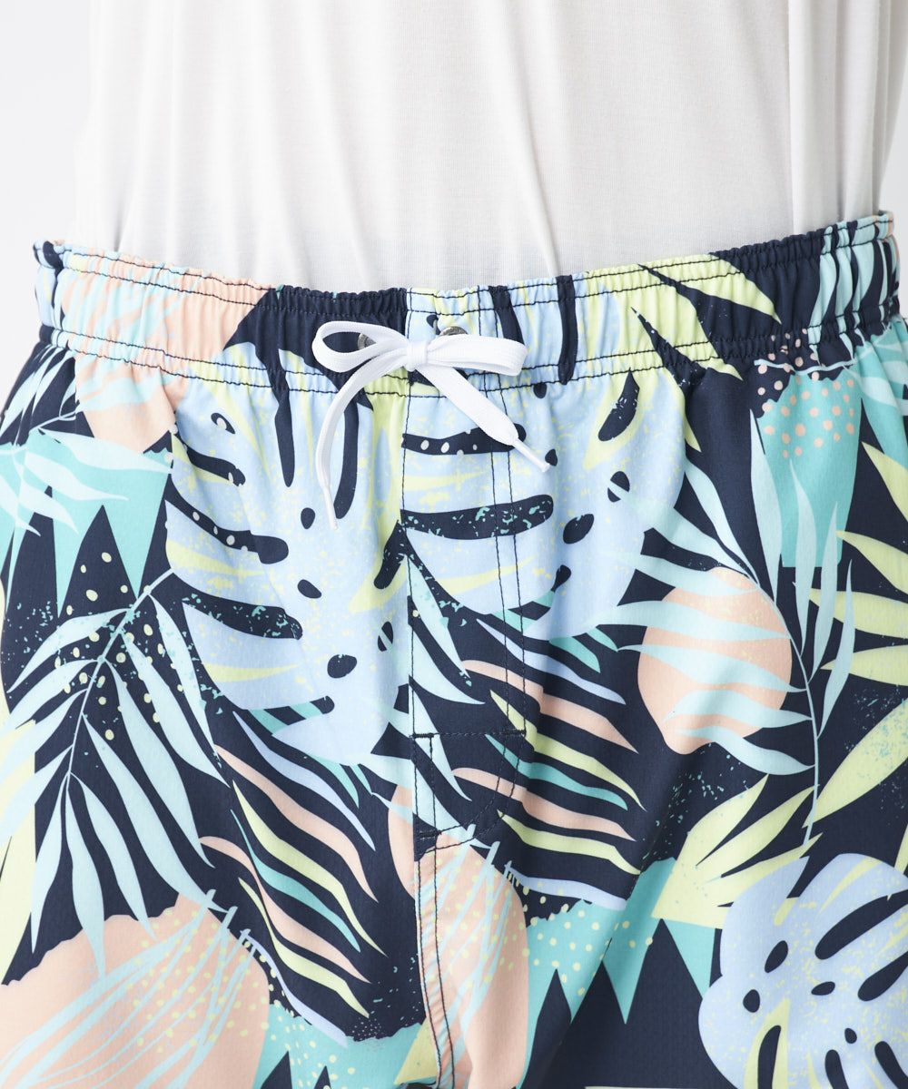 アロハ柄の爽やかなサーフトランクス。インナー付きで動きやすい仕様。