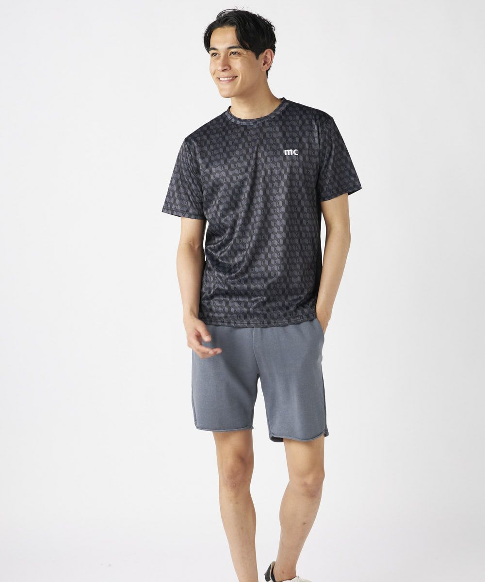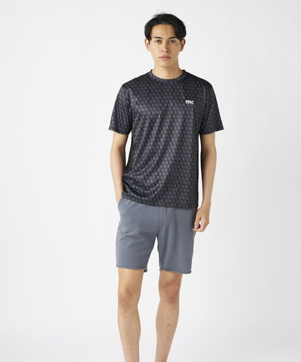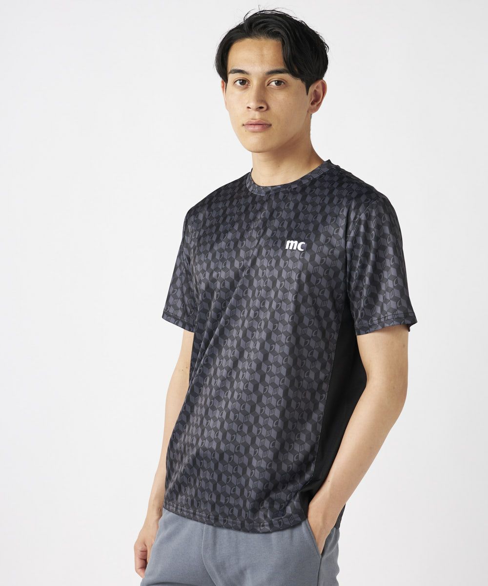脇の切り替えがシルエットをすっきりと見せてくれる接触冷感生地のTシャツ。パリから届いたMCが散りばめ られた総柄がスポーティーながらもクールな印象の一枚で決まるアイテムです。