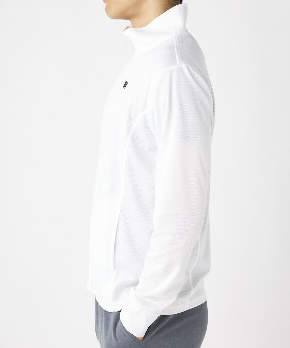 脇の切り替えがシルエットをすっきりと見せてくれる長袖のUVジャケット。衿も高めの設定なのでメンズも気 になる首元の紫外線をしっかり対策してくれるので一枚持っていると役立つアイテムです。