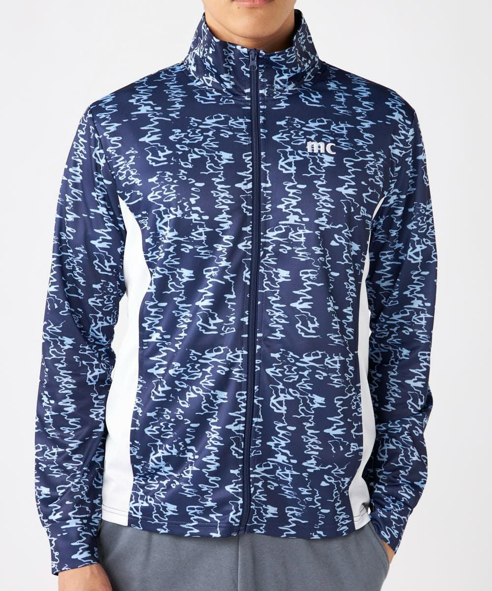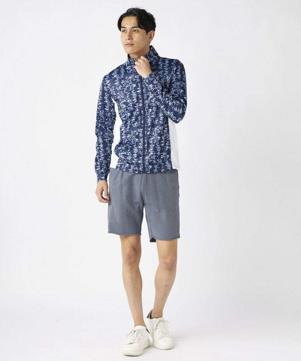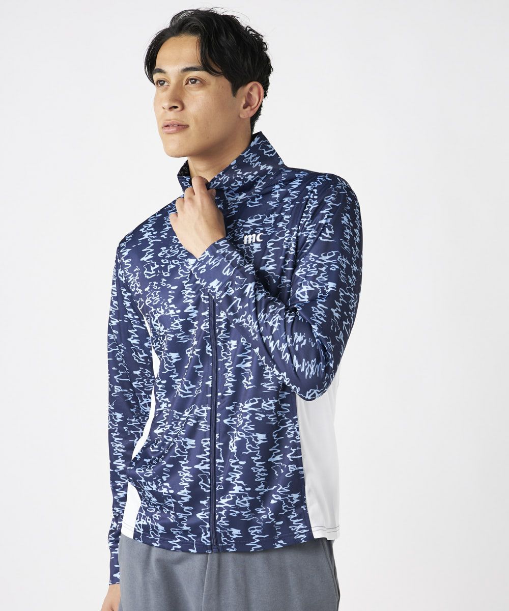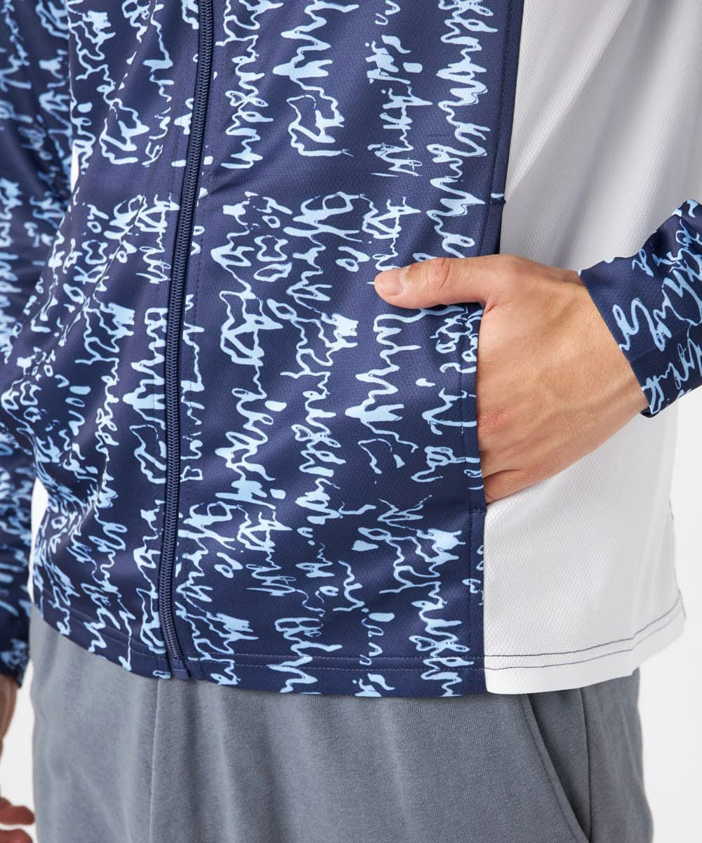 脇の切り替えがシルエットをすっきりと見せてくれる長袖のUVジャケット。衿も高めの設定なのでメンズも気 になる首元の紫外線をしっかり対策してくれます。パリから届いた他には無いオシャレな総柄がコーディネート の主役に間違いなしのアイテムです。